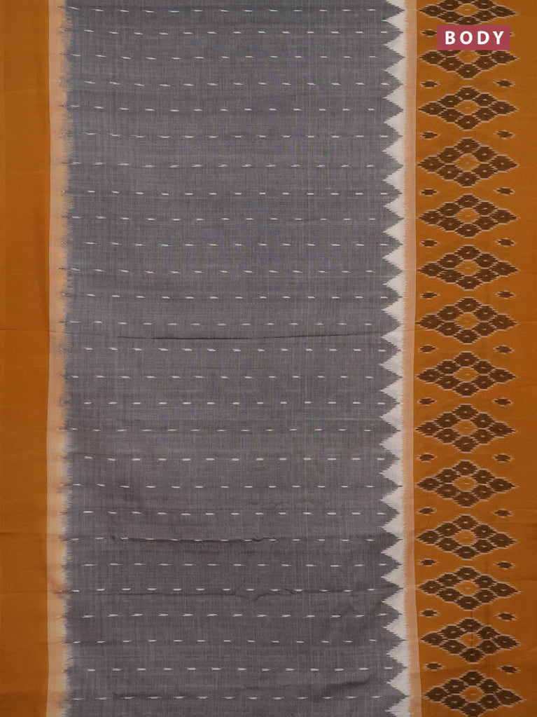Ikat cotton saree grey and mustard yellow with allover ikat butta weaves and long ikat style border