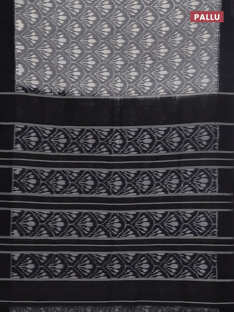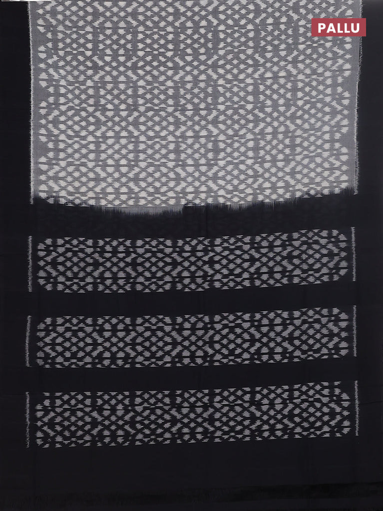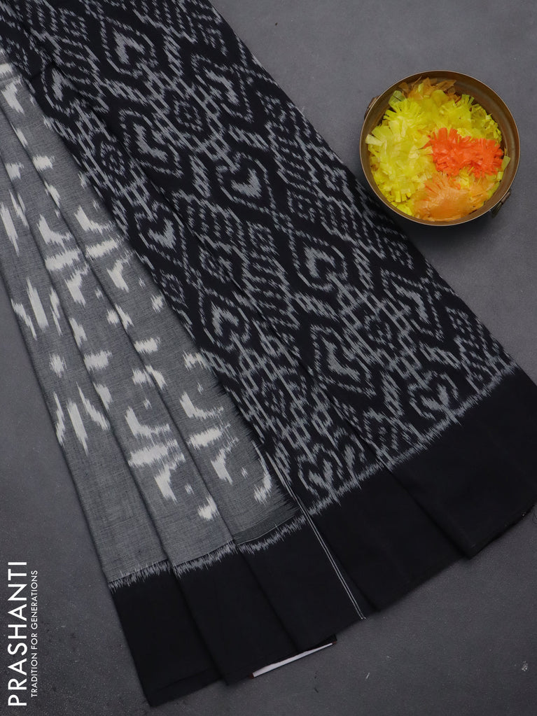Ikat cotton saree grey and black with allover ikat weaves and simple border