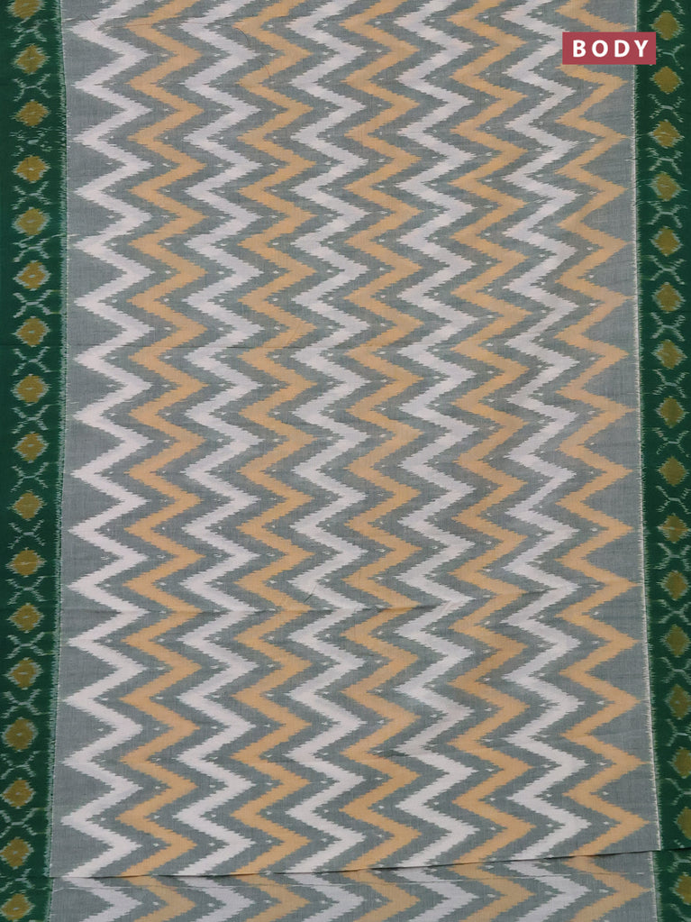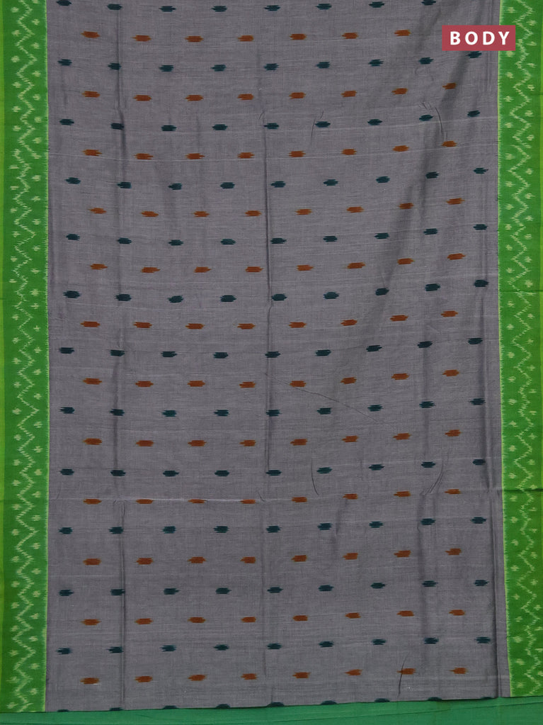 Ikat cotton saree grey and green with allover ikat butta weaves and ikat style border
