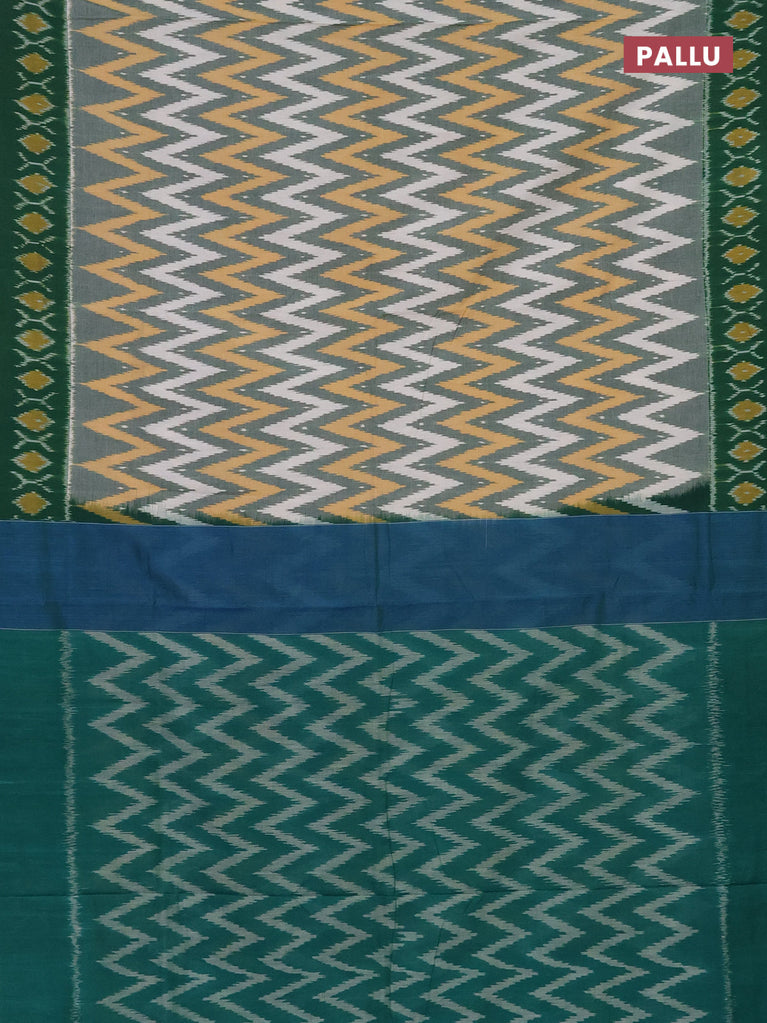 Ikat cotton saree green and blue with allover ikat weaves and simple border