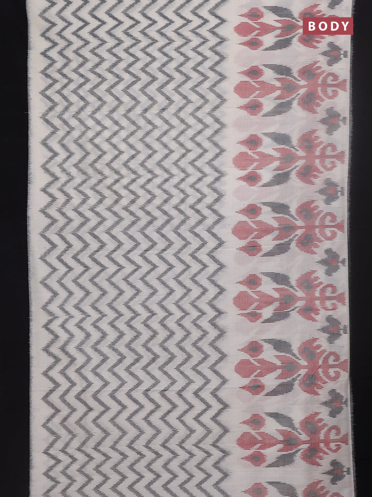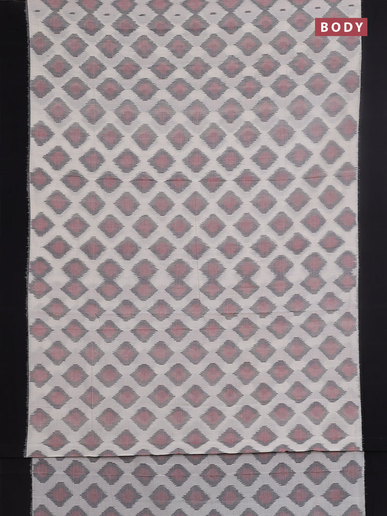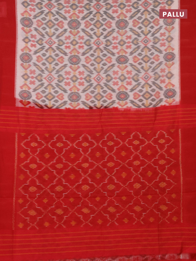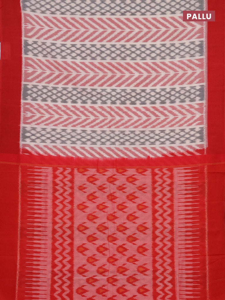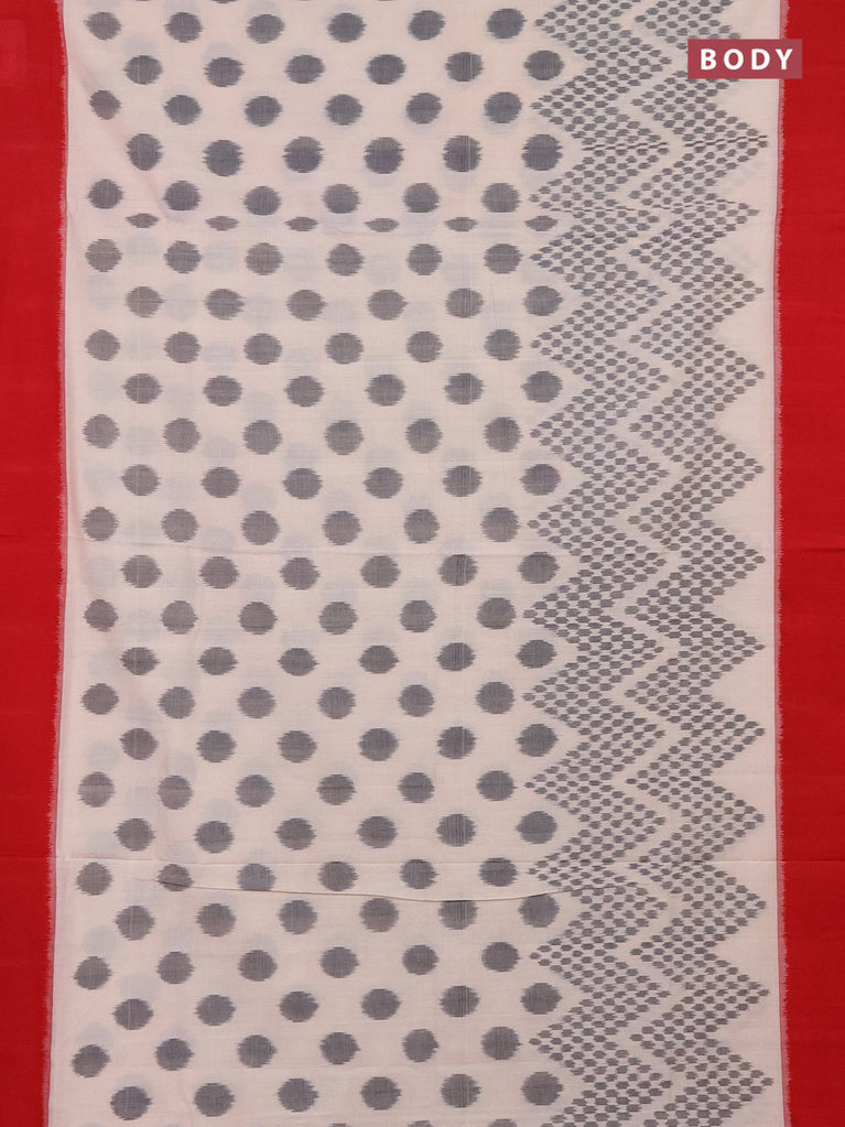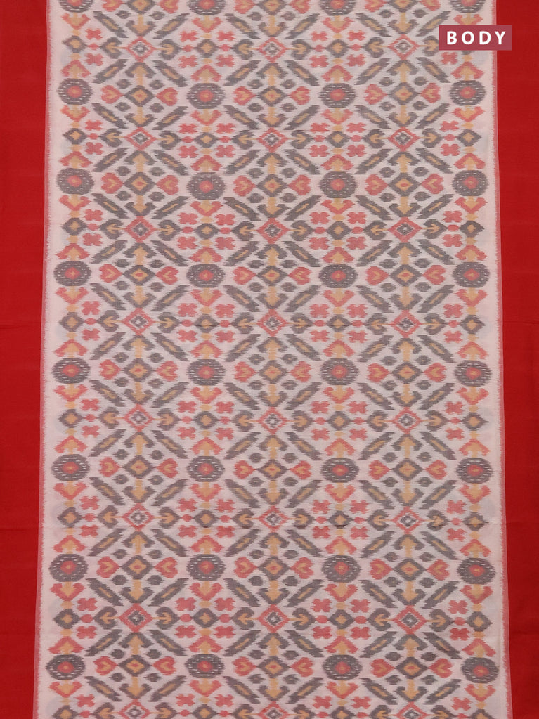 Ikat cotton saree off white grey and red with allover ikat weaves and simple border