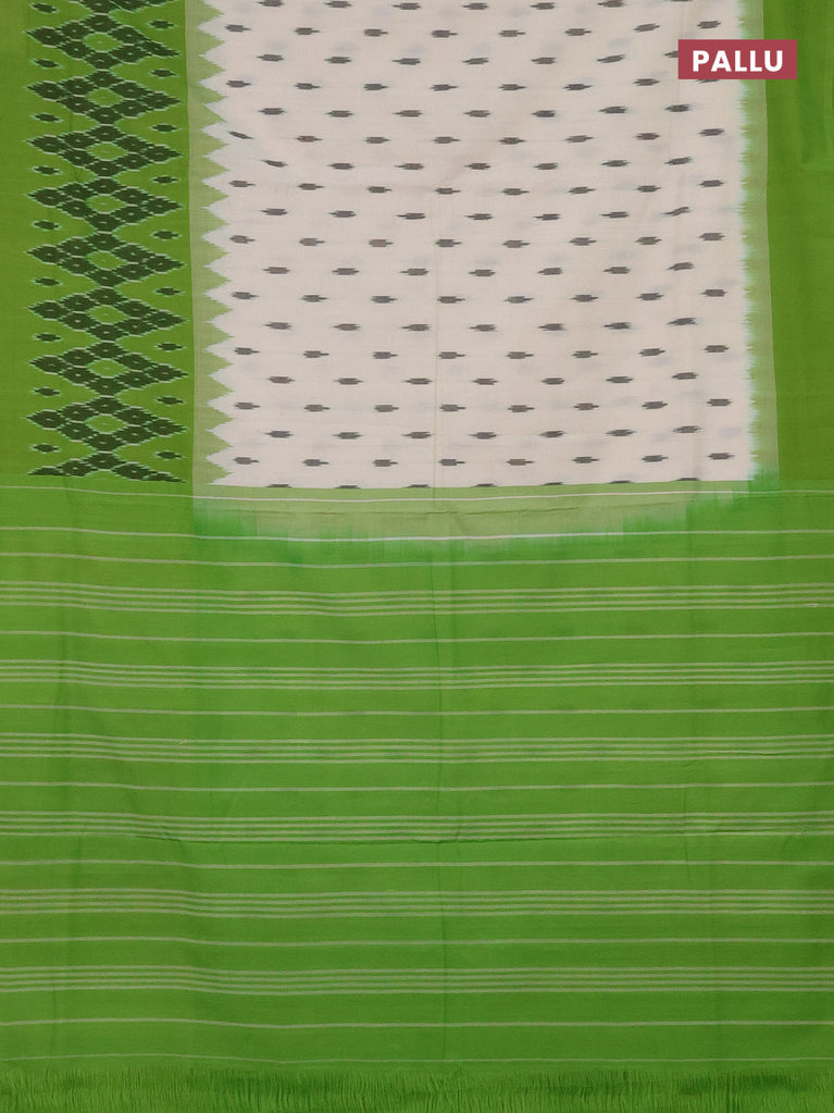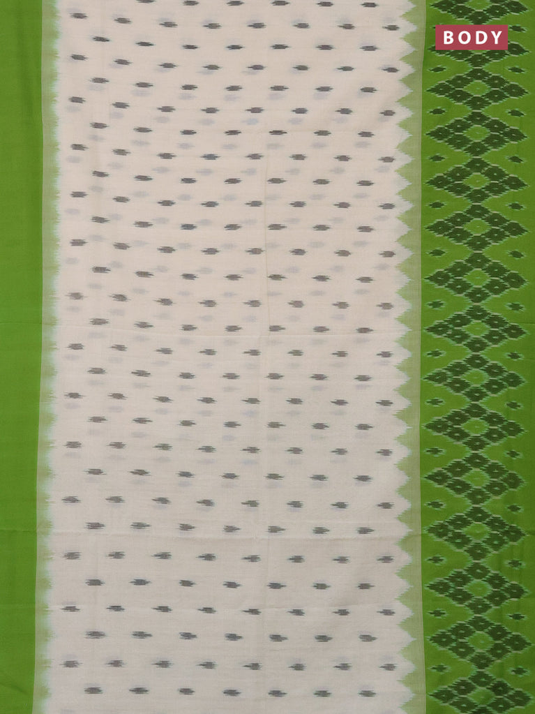 Ikat cotton saree off white and light green with allover ikat weaves and simple border