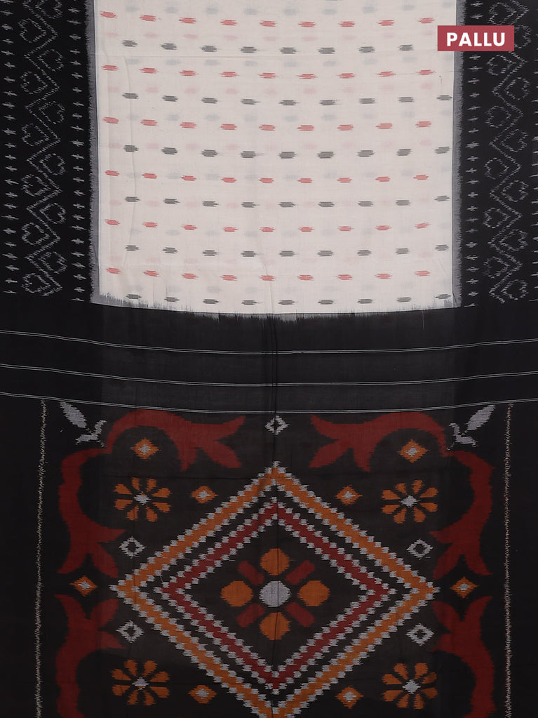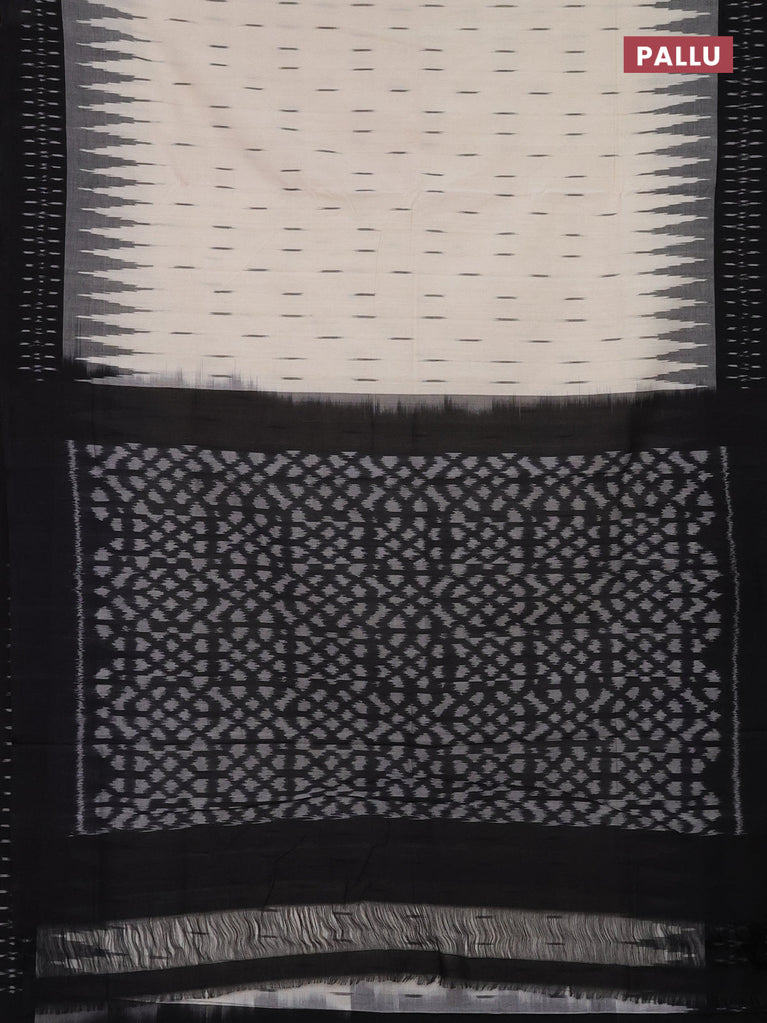 Ikat cotton saree off white and black with allover ikat butta weaves and long ikat style border