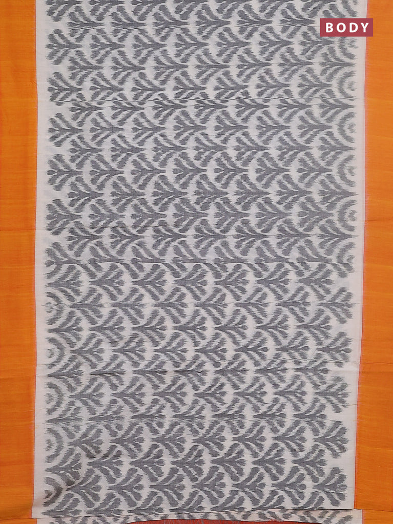 Ikat cotton saree off white and mango yellow with allover ikat weaves and simple border