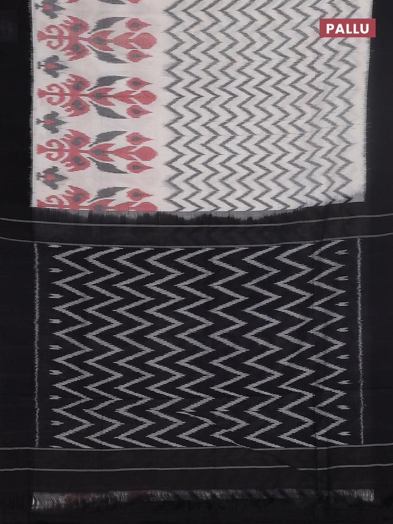 Ikat cotton saree off white and black red with plain body and long ikat style border