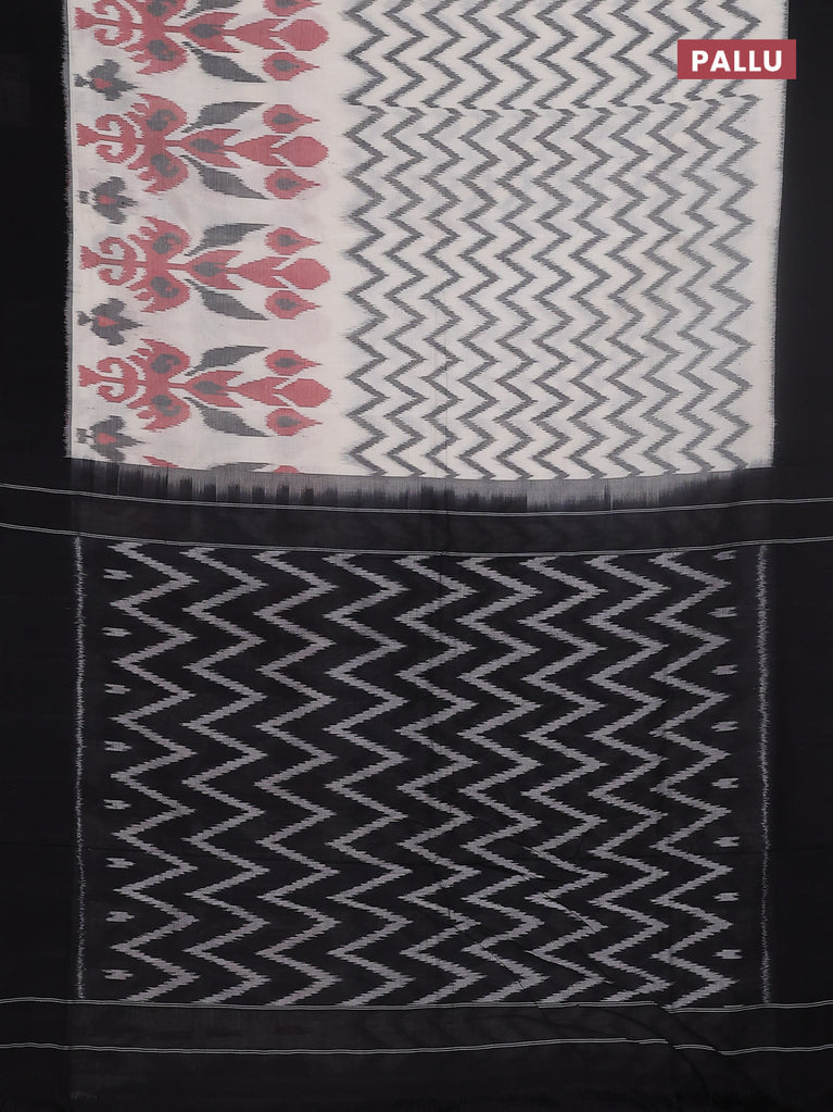 Ikat cotton saree off white and black with allover zig zag ikat weaves and long ikat style border