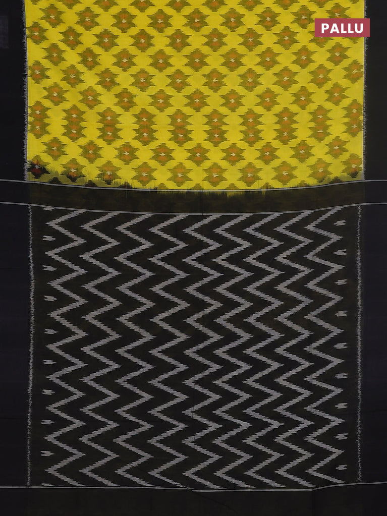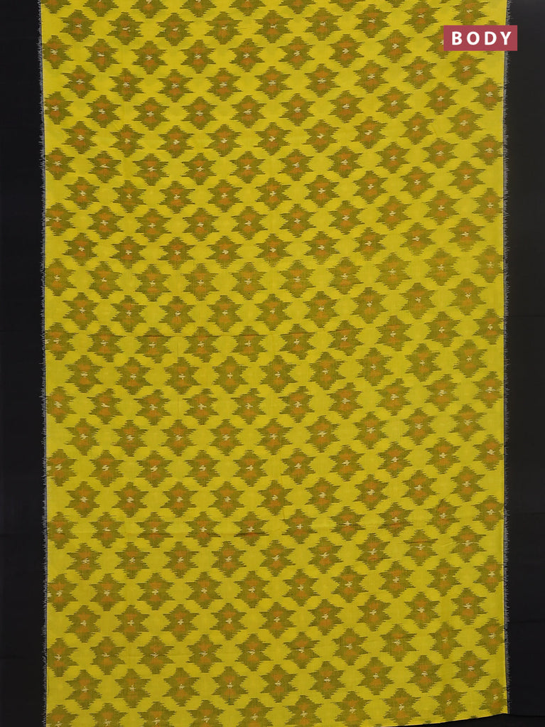 Ikat cotton saree yellow and black with allover ikat weaves and simple border