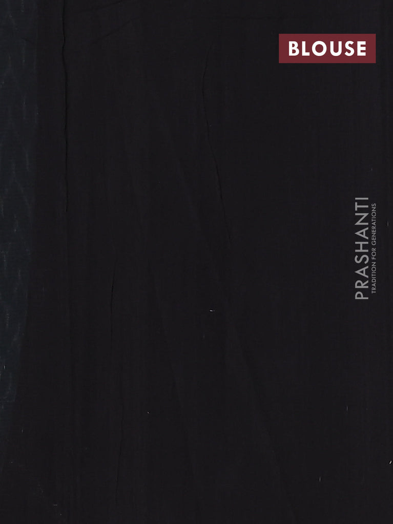 Ikat cotton saree teal green and black with allover ikat weaves and simple border