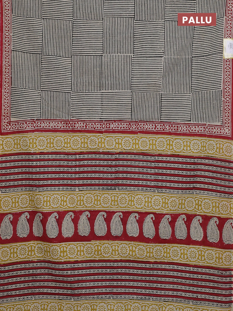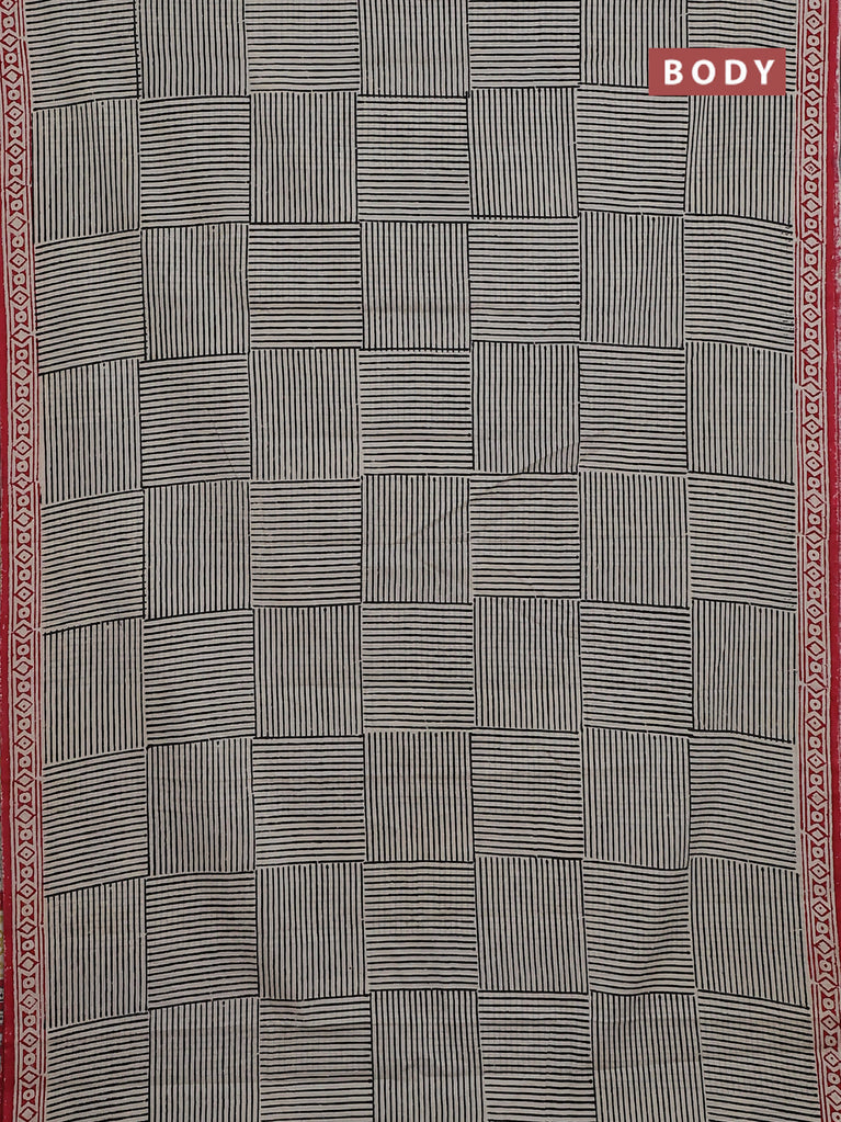 Jaipur cotton saree beige black and maroon with allover stripe pattern and printed border