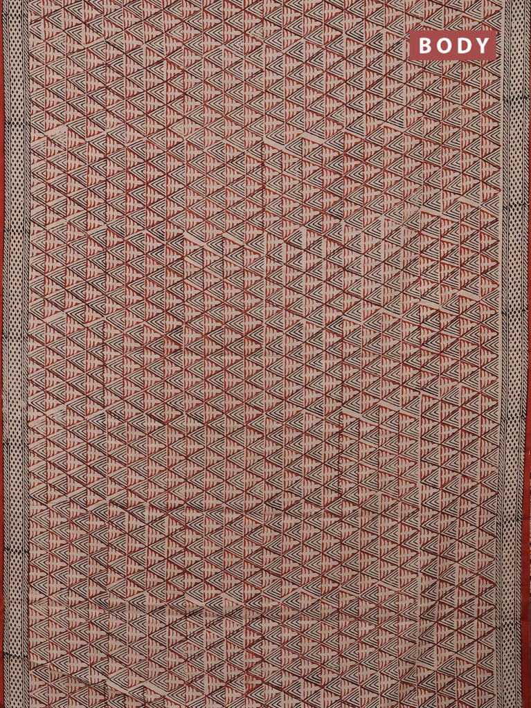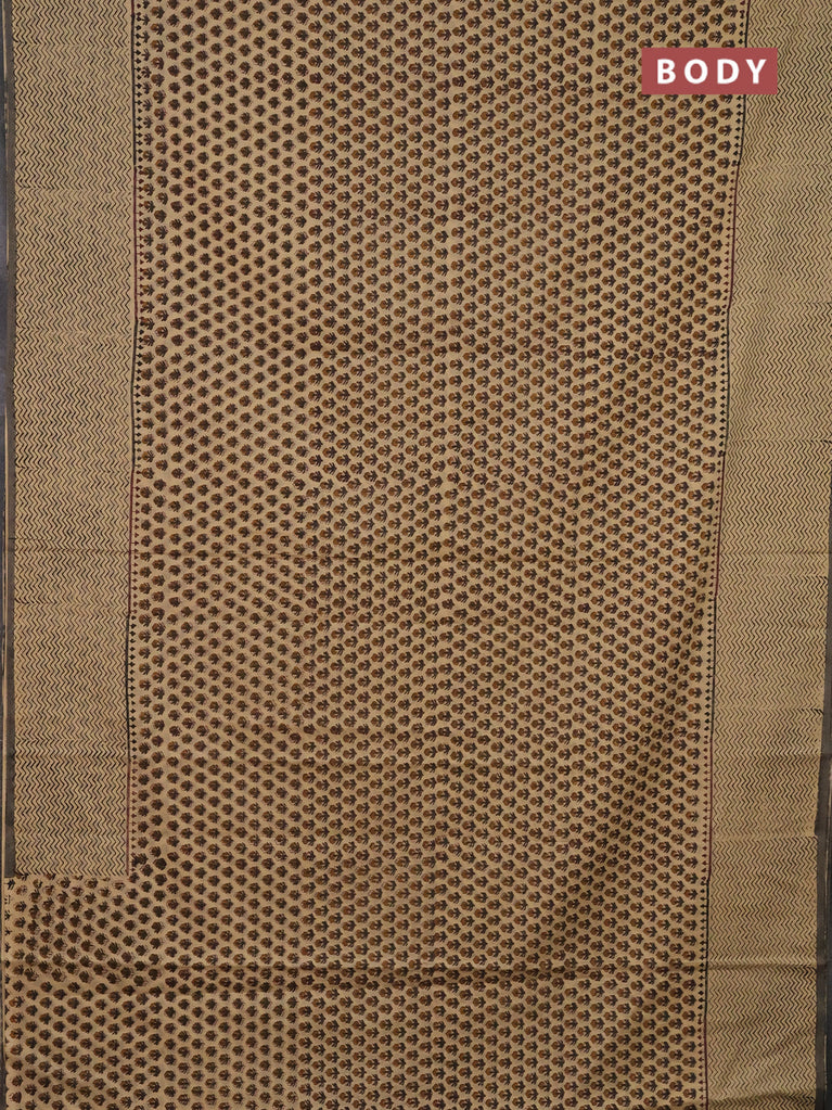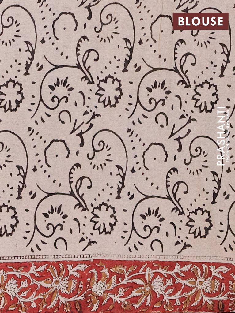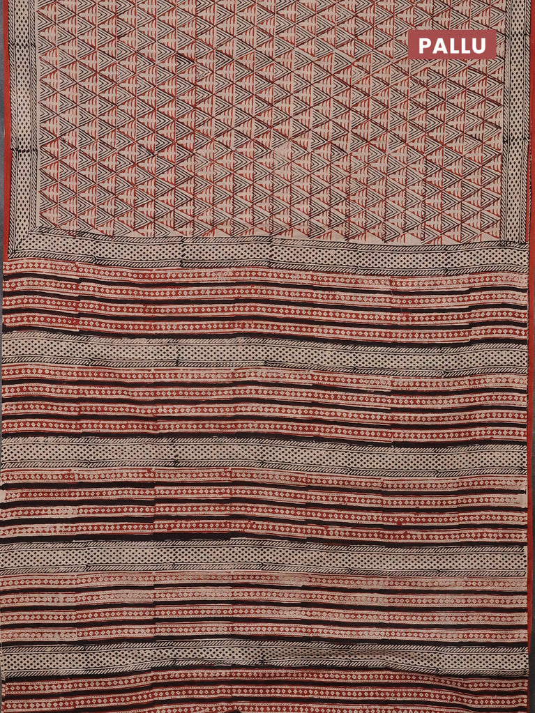 Jaipur cotton saree beige and rust shade with allover prints and printed border