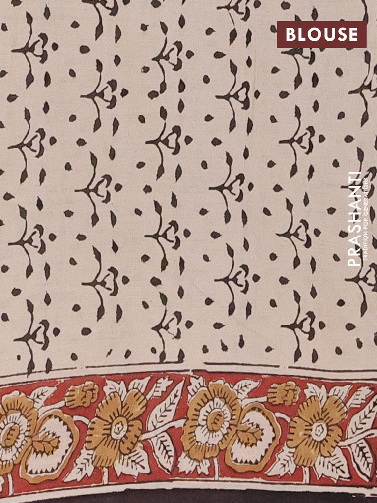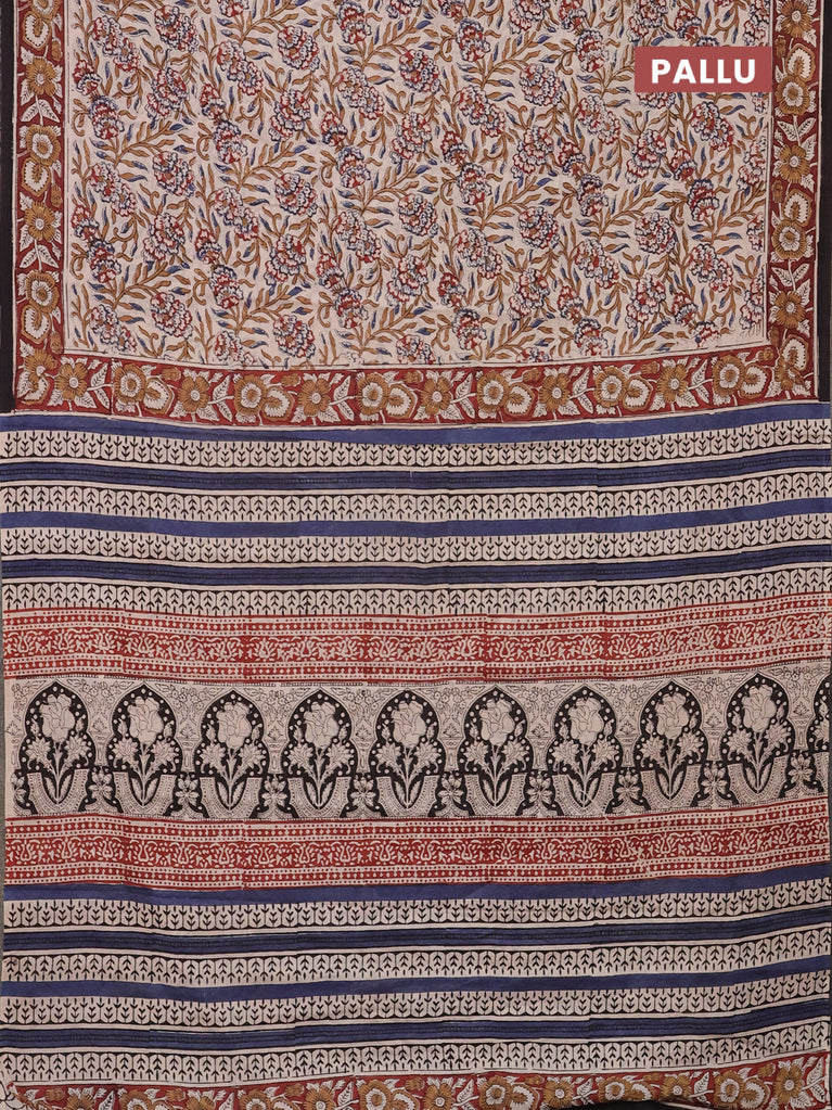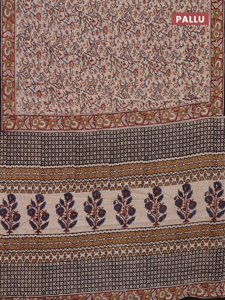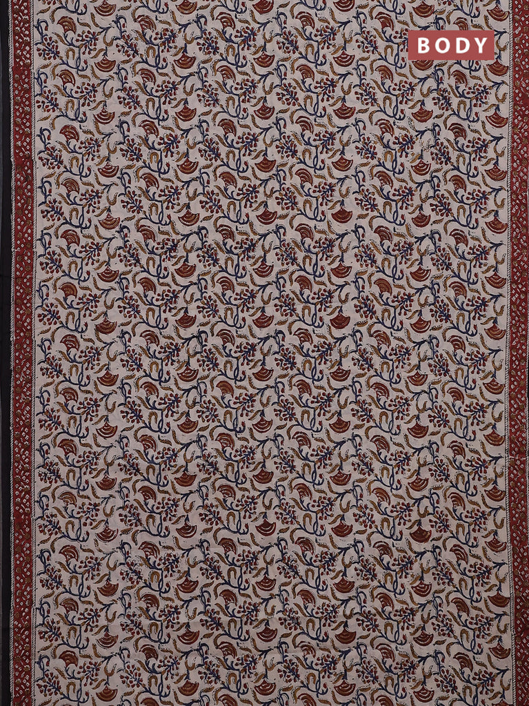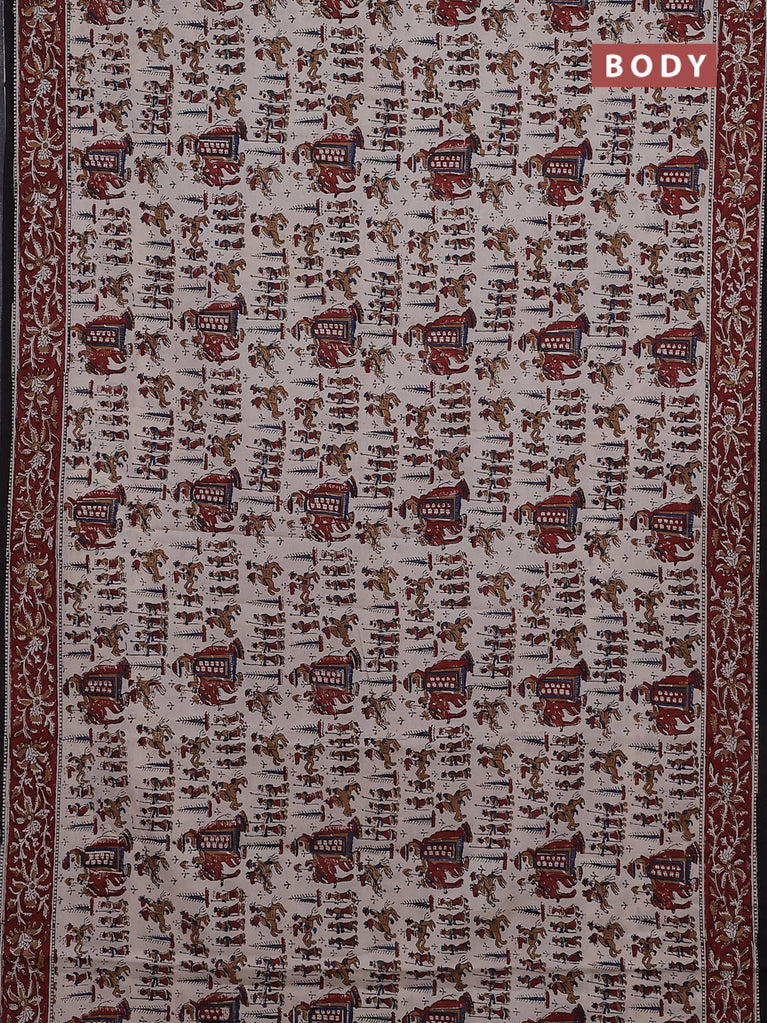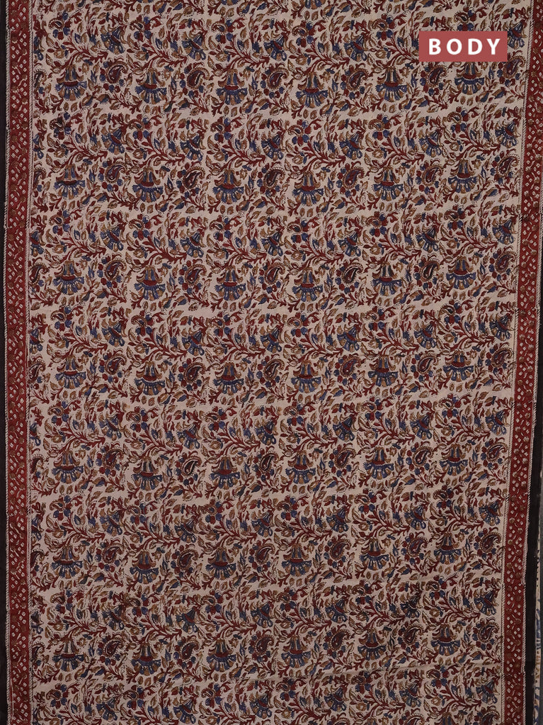 Jaipur cotton saree beige and maroon black with allover kalamkari prints and printed border
