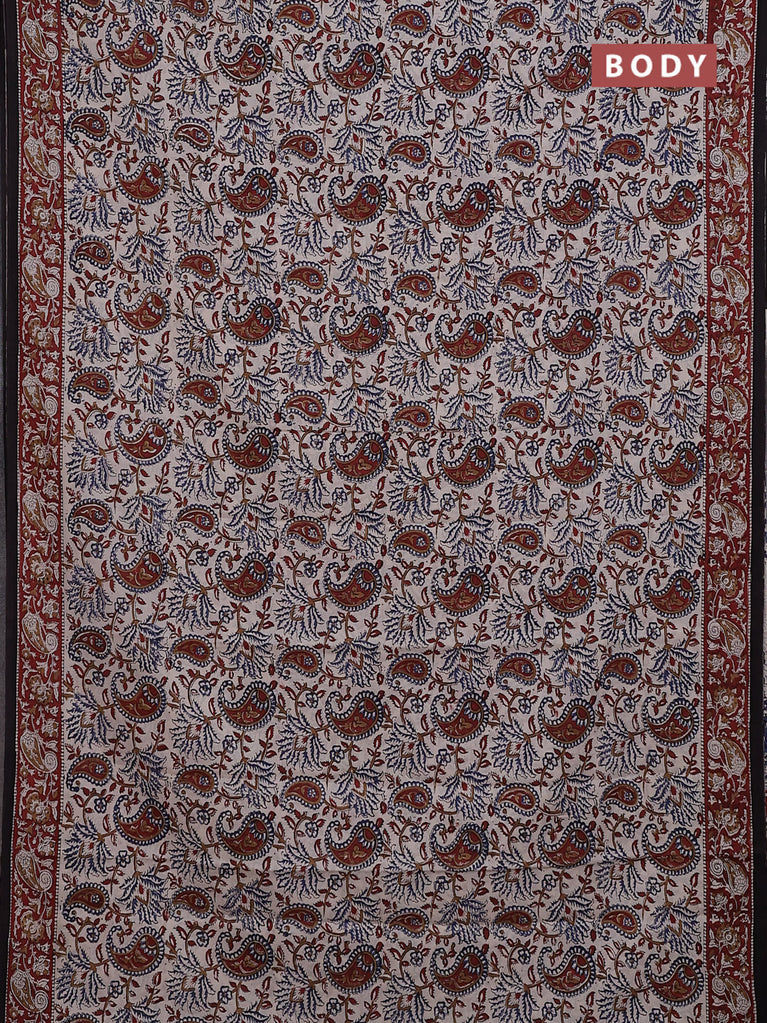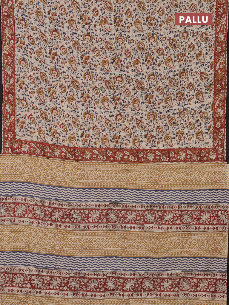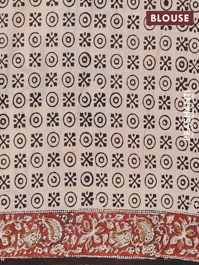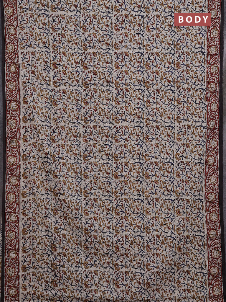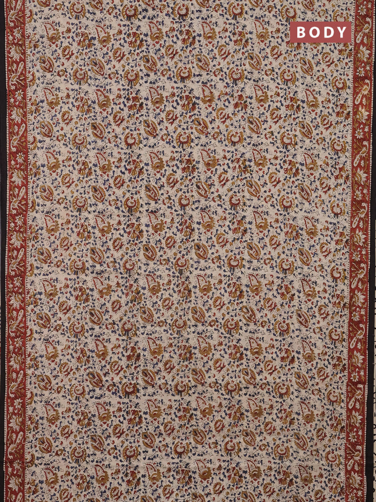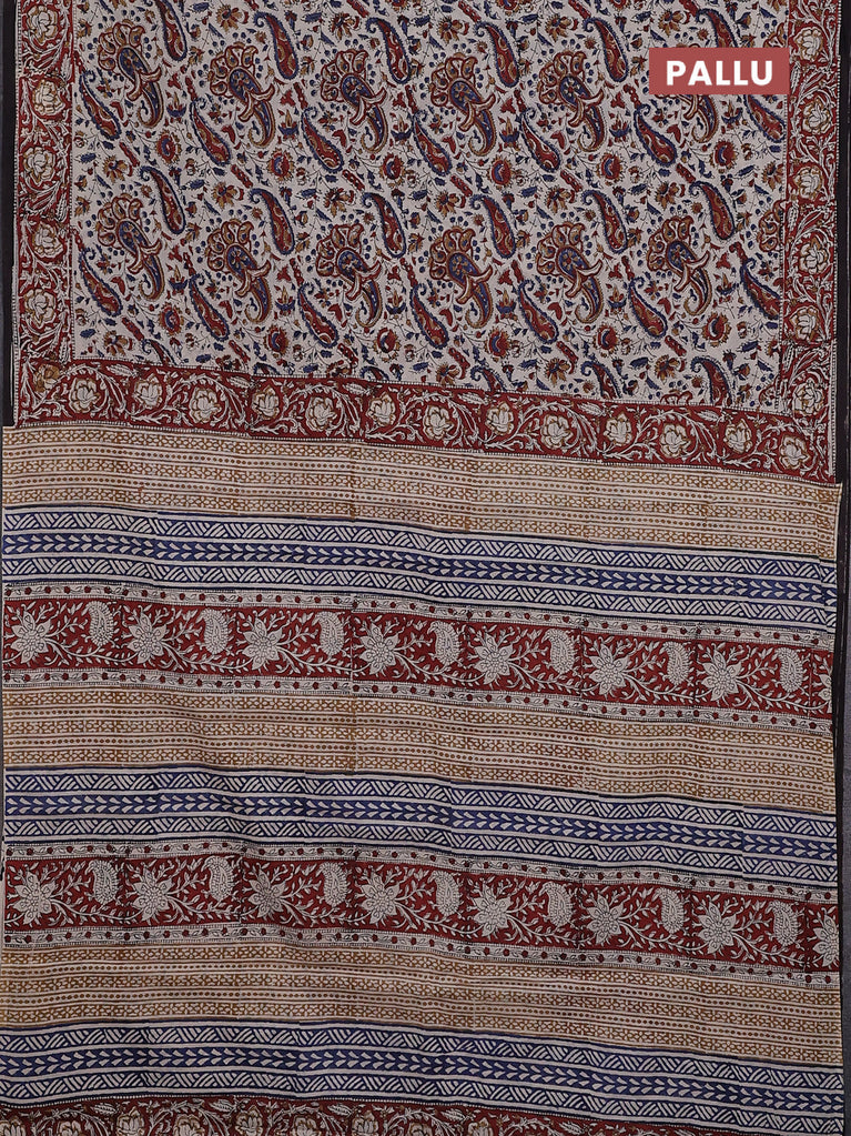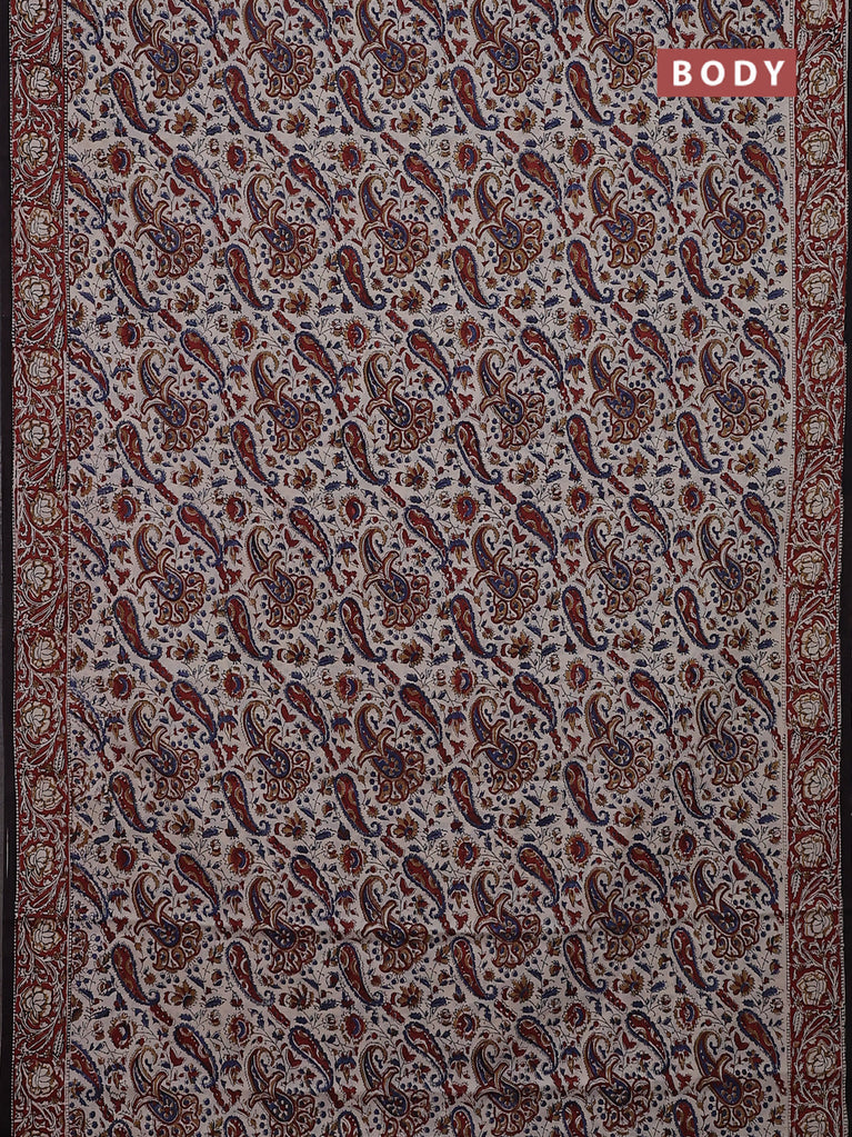 Jaipur cotton saree beige and maroon black with allover kalamkari prints and printed border