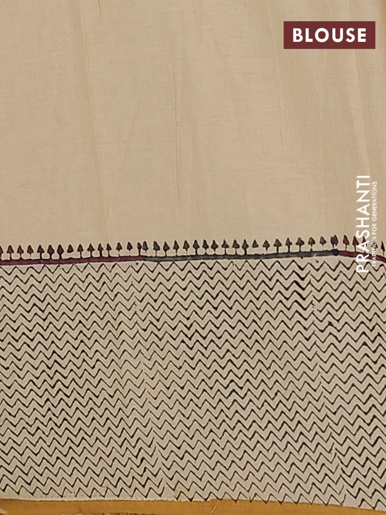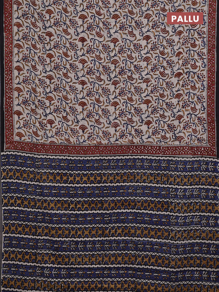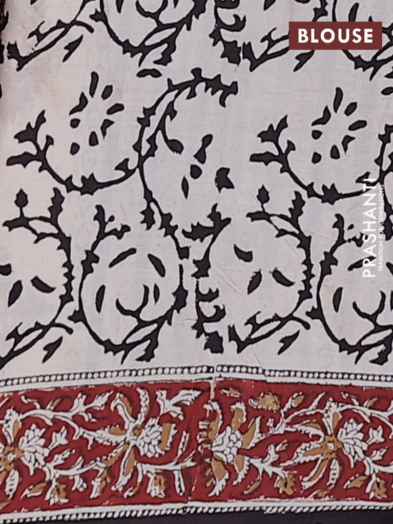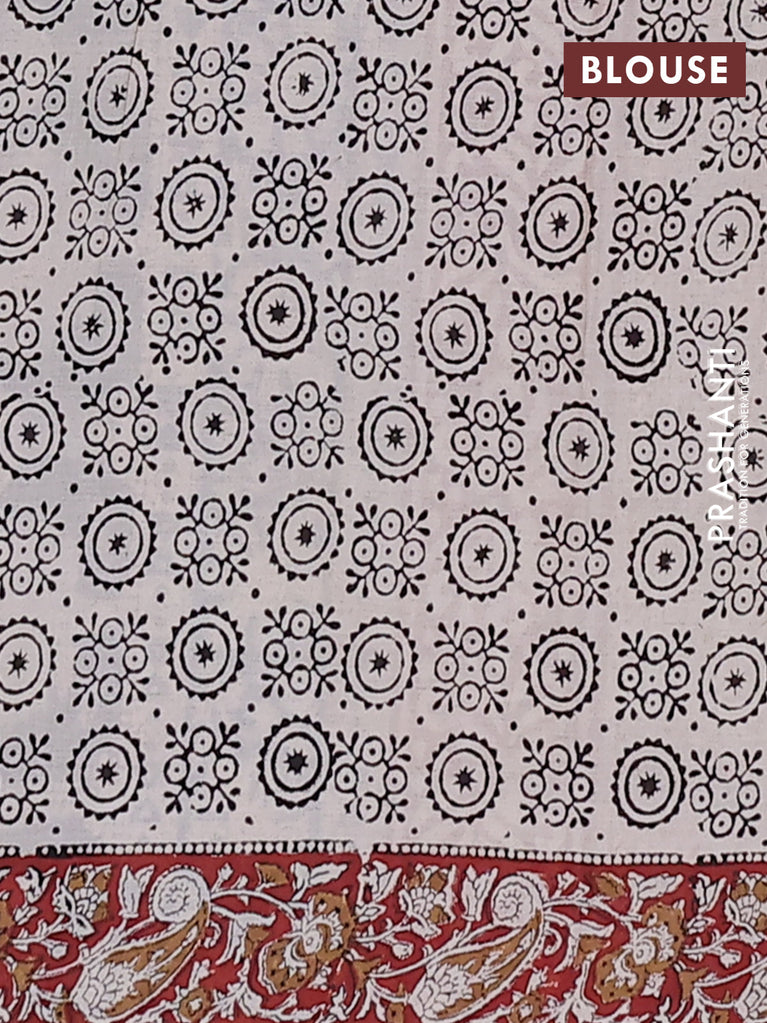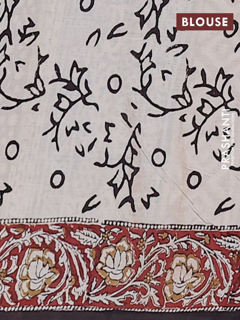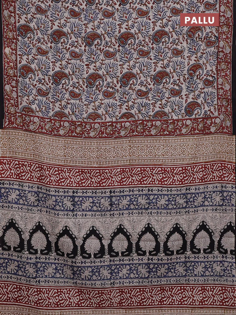 Jaipur cotton saree beige and maroon black with allover kalamkari prints and printed border