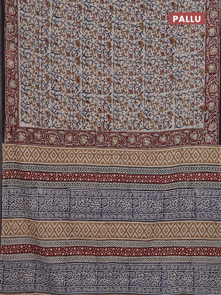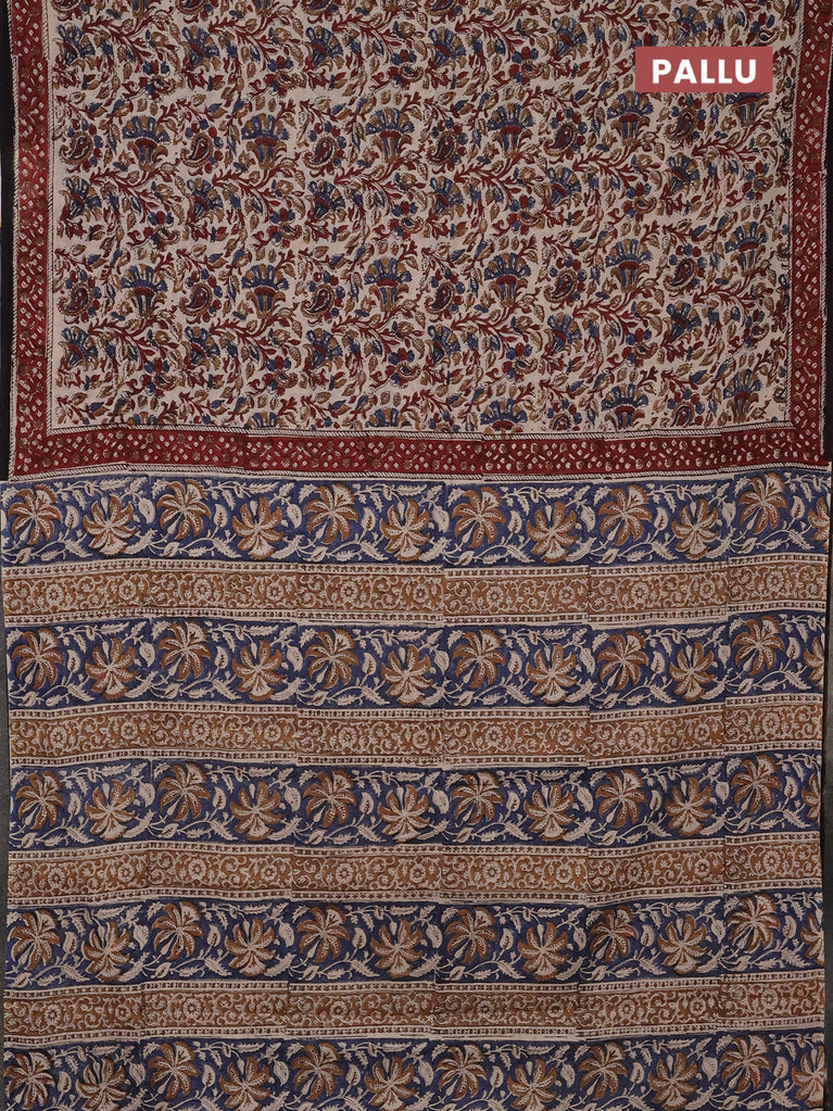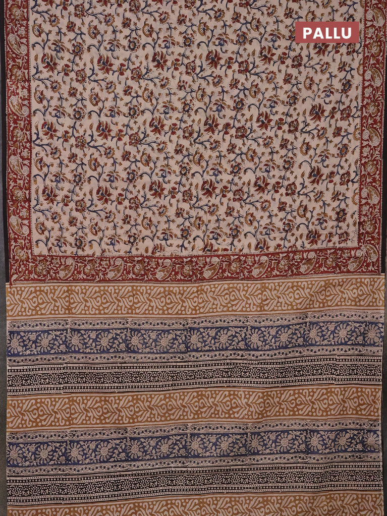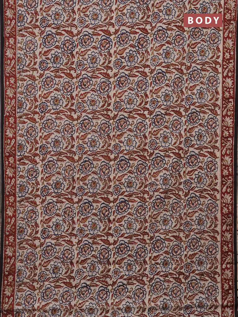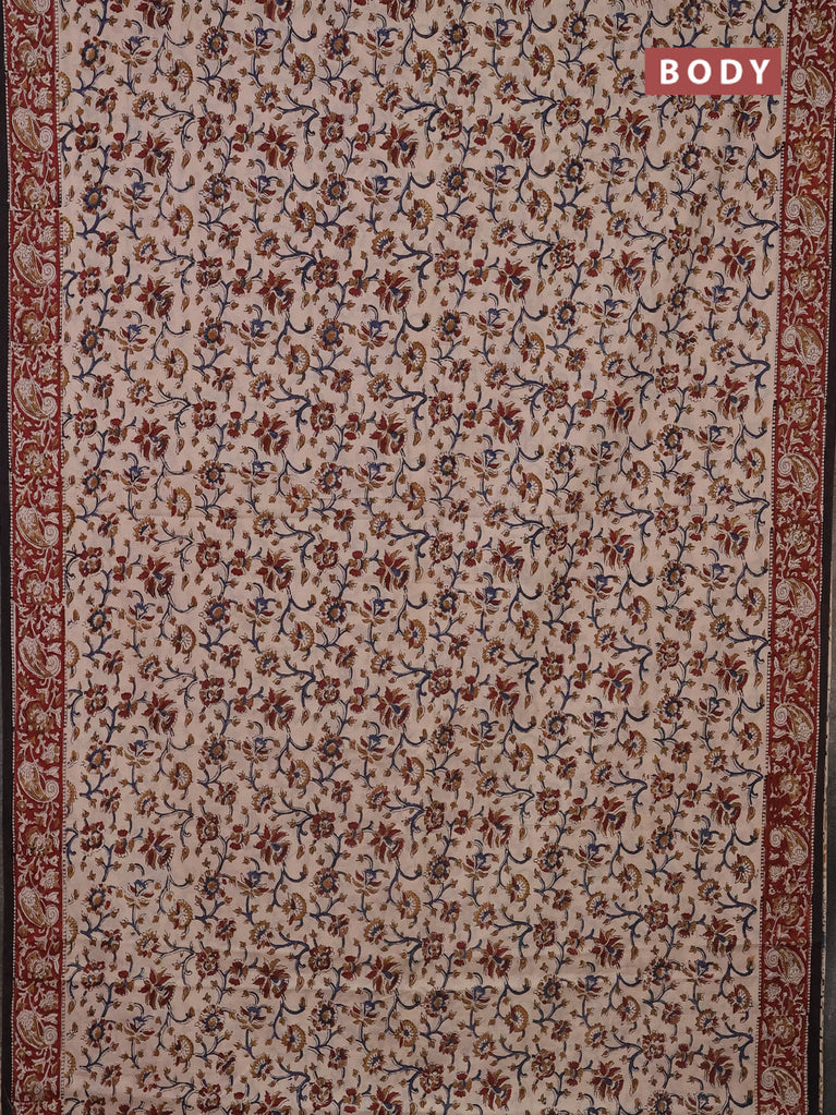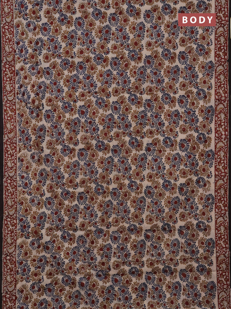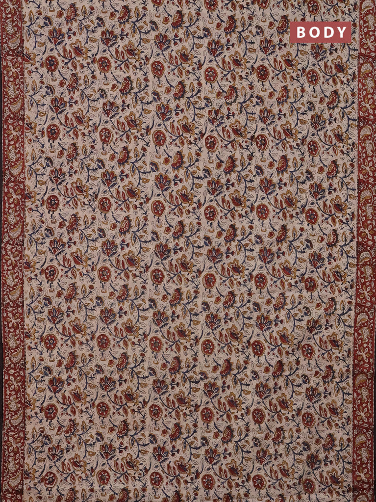 Jaipur cotton saree beige and maroon with allover kalamkari prints and printed border