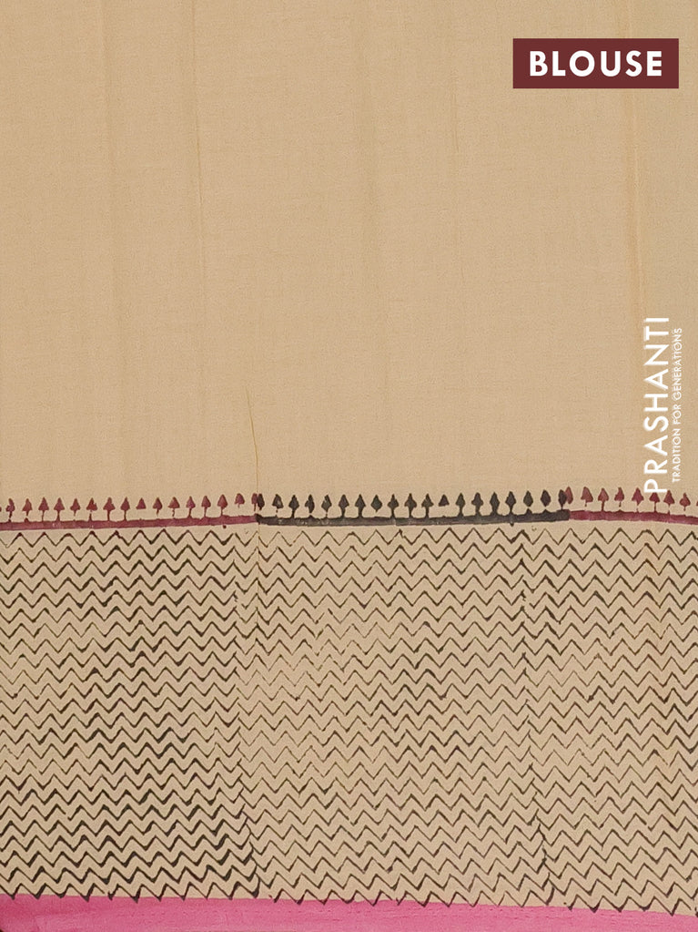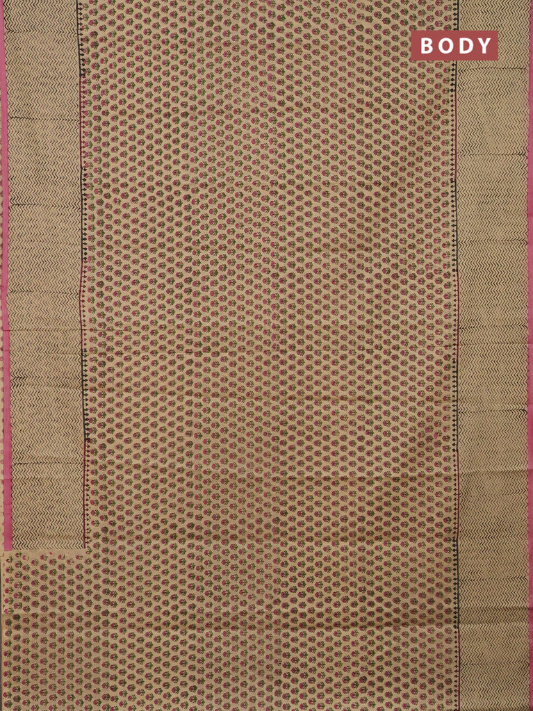 Jaipur cotton saree beige and pink with allover butta prints and printed border