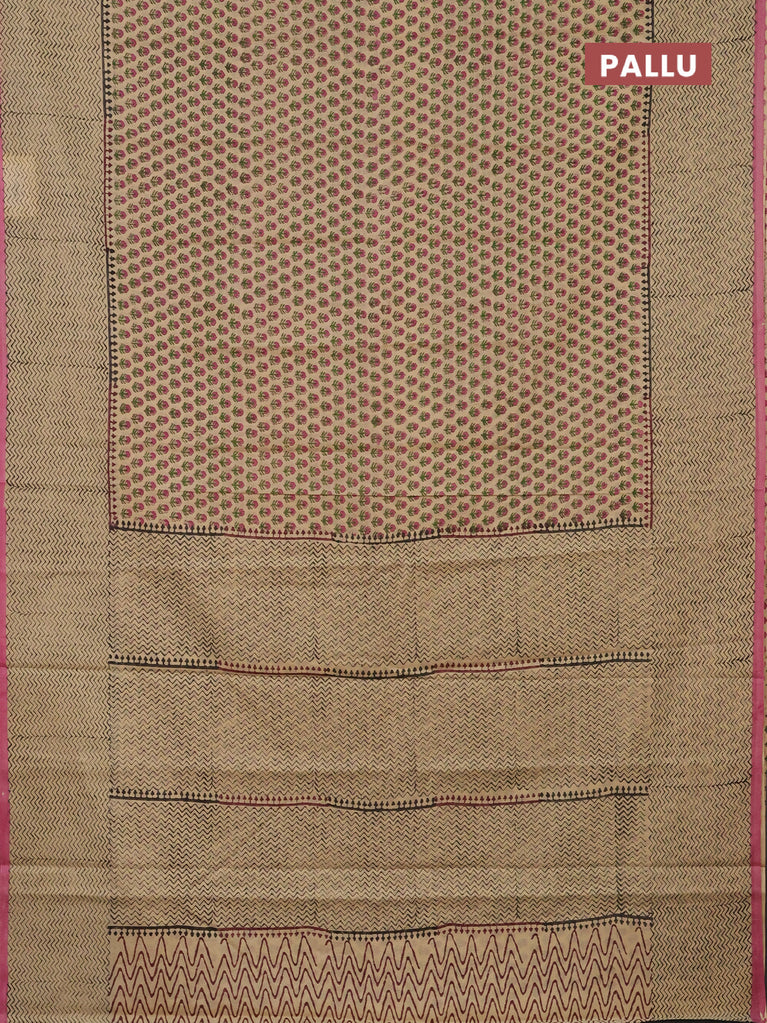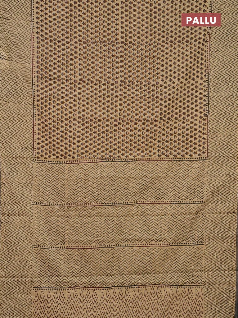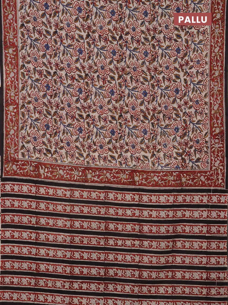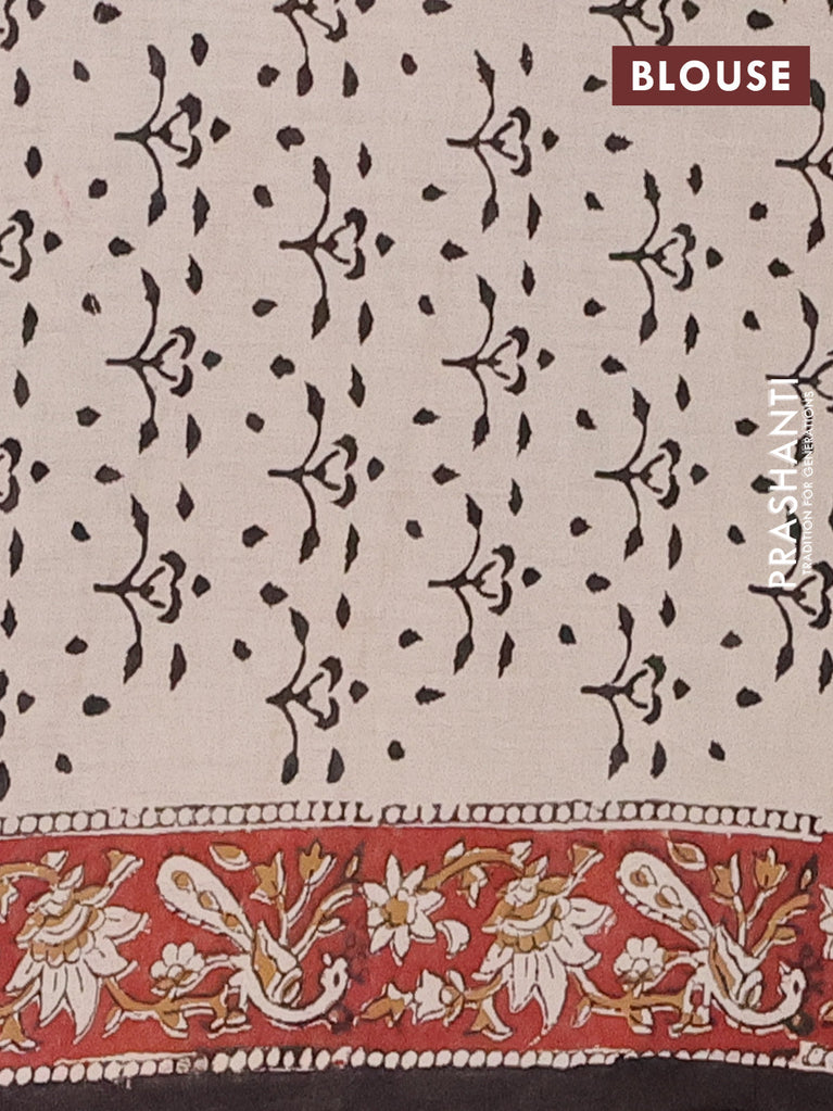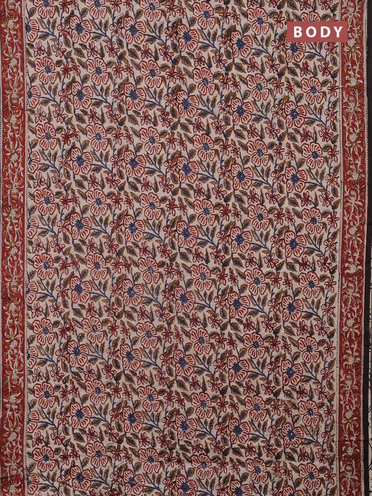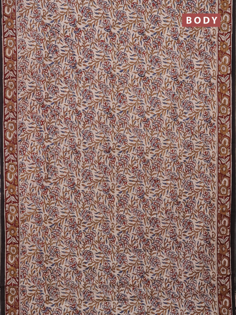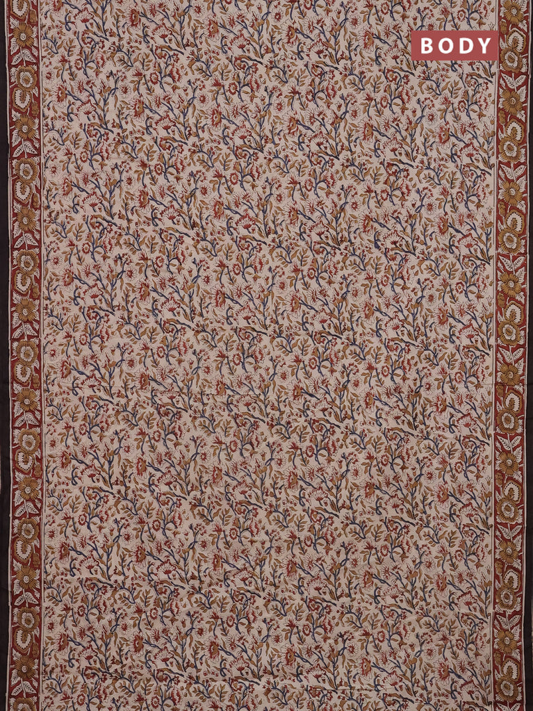 Jaipur cotton saree beige and marron with allover kalamkari prints and printed border