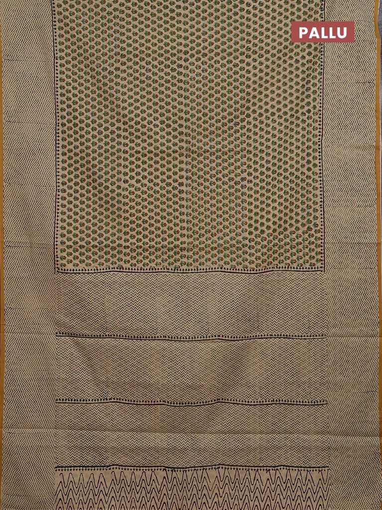 Jaipur cotton saree beige and mustard yellow with allover butta prints and printed border