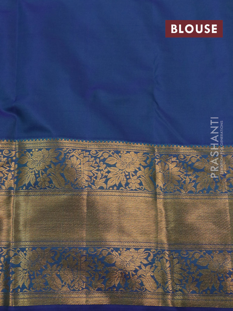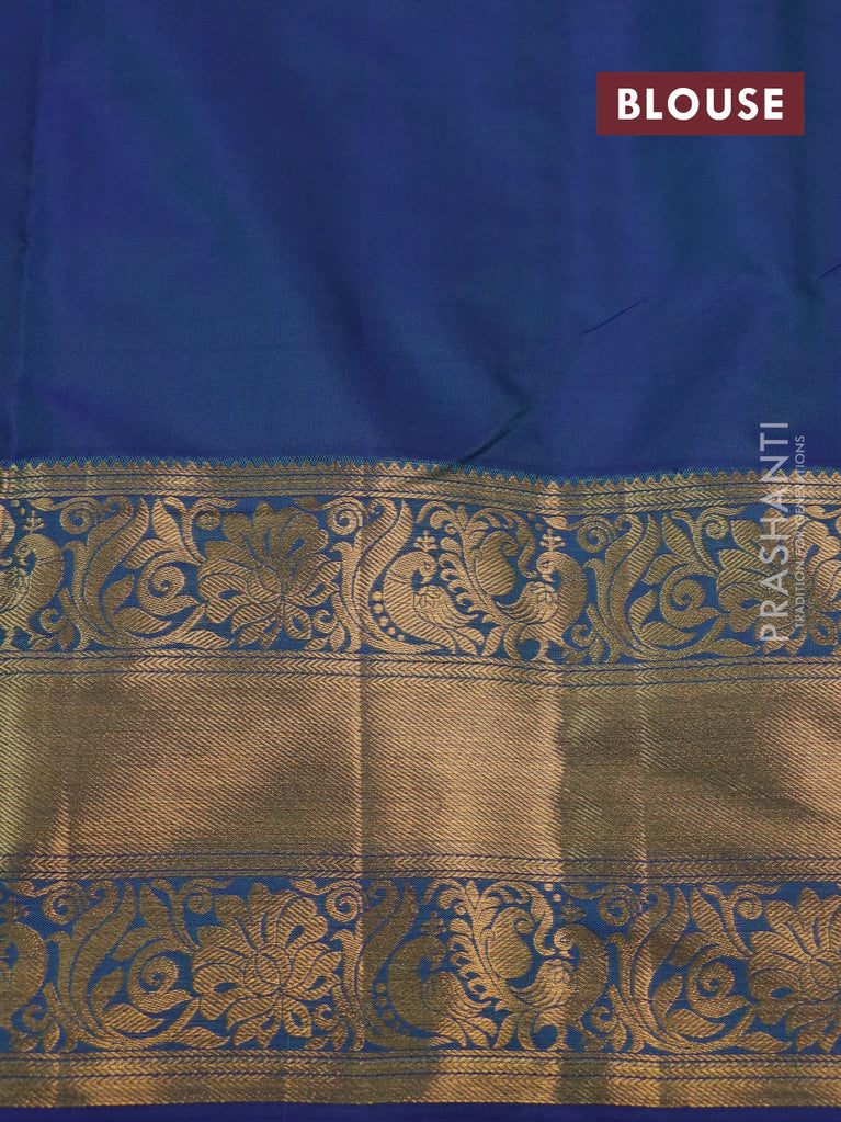 Kanchipuram silk saree dual shade of blue with allover zari woven brocade weaves and long rich zari woven border