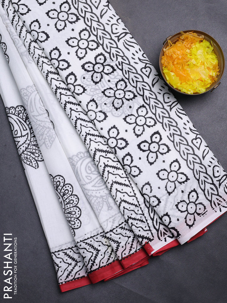 Jaipur cotton saree off white and maroon with warli butta prints and printed border
