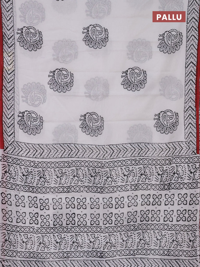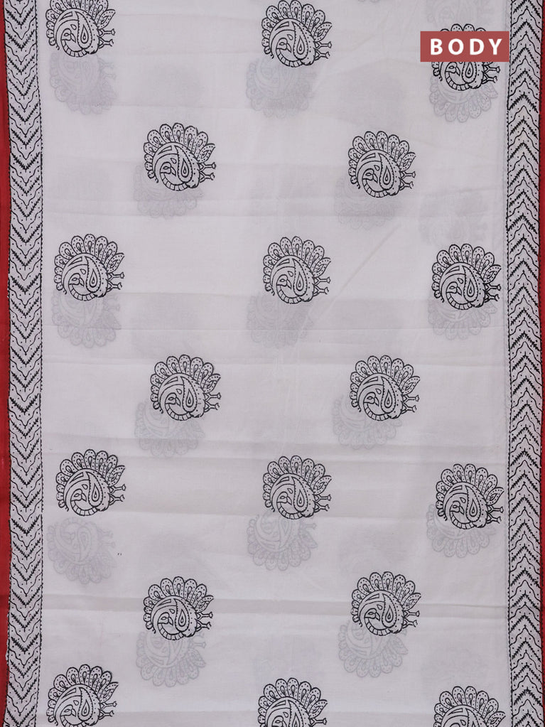 Jaipur cotton saree off white and maroon with annam butta prints and printed border