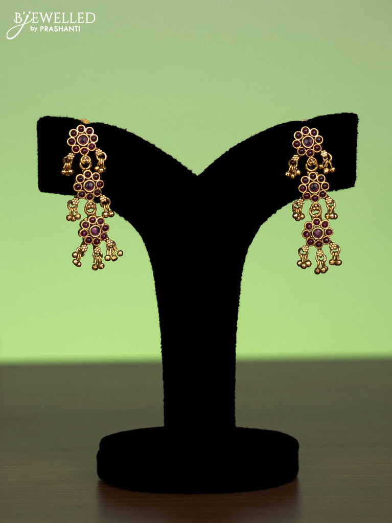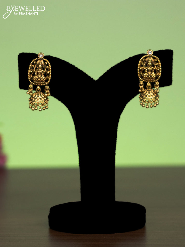 Antique medium size maatal type jhumka with kemp & cz stones and pearl hangings