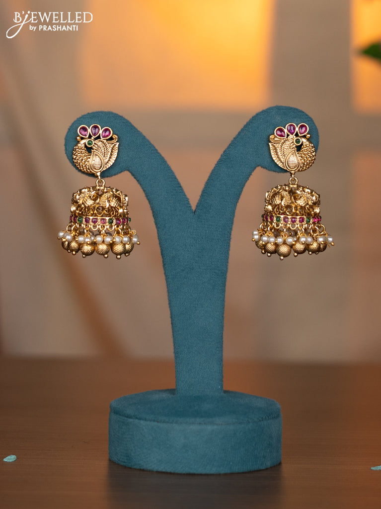 Antique neckalce peacock design with kemp & cz stones and pearl & golden beads hanging