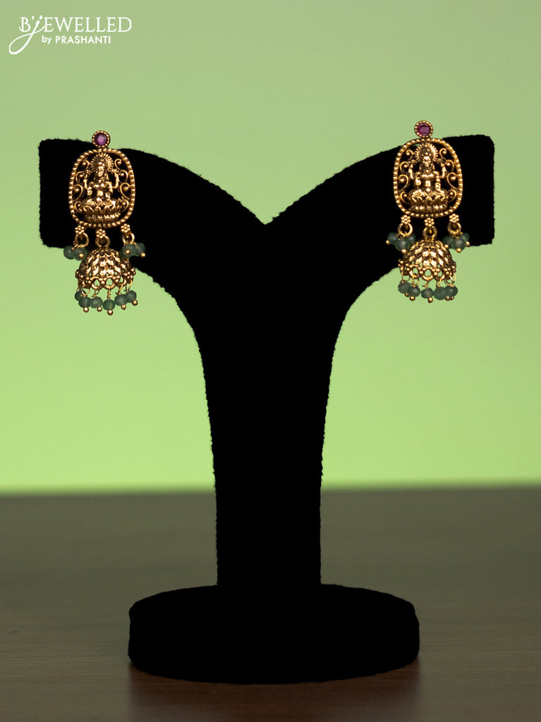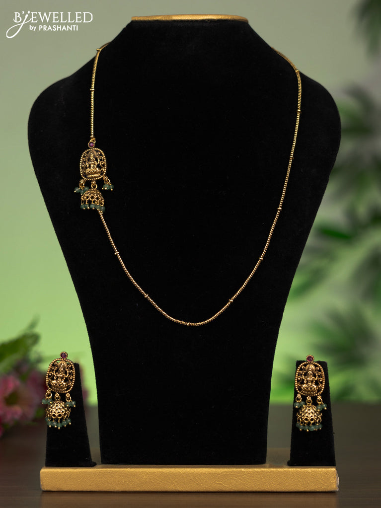 Antique necklace lakshmi design with jadau stones and green beads hanging