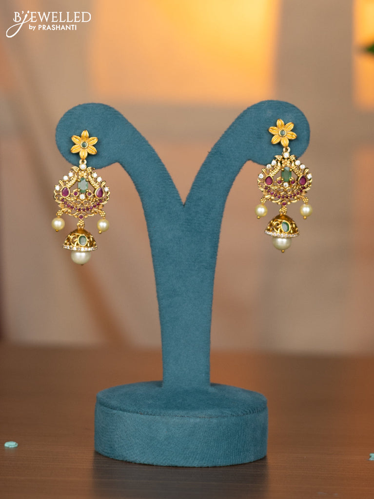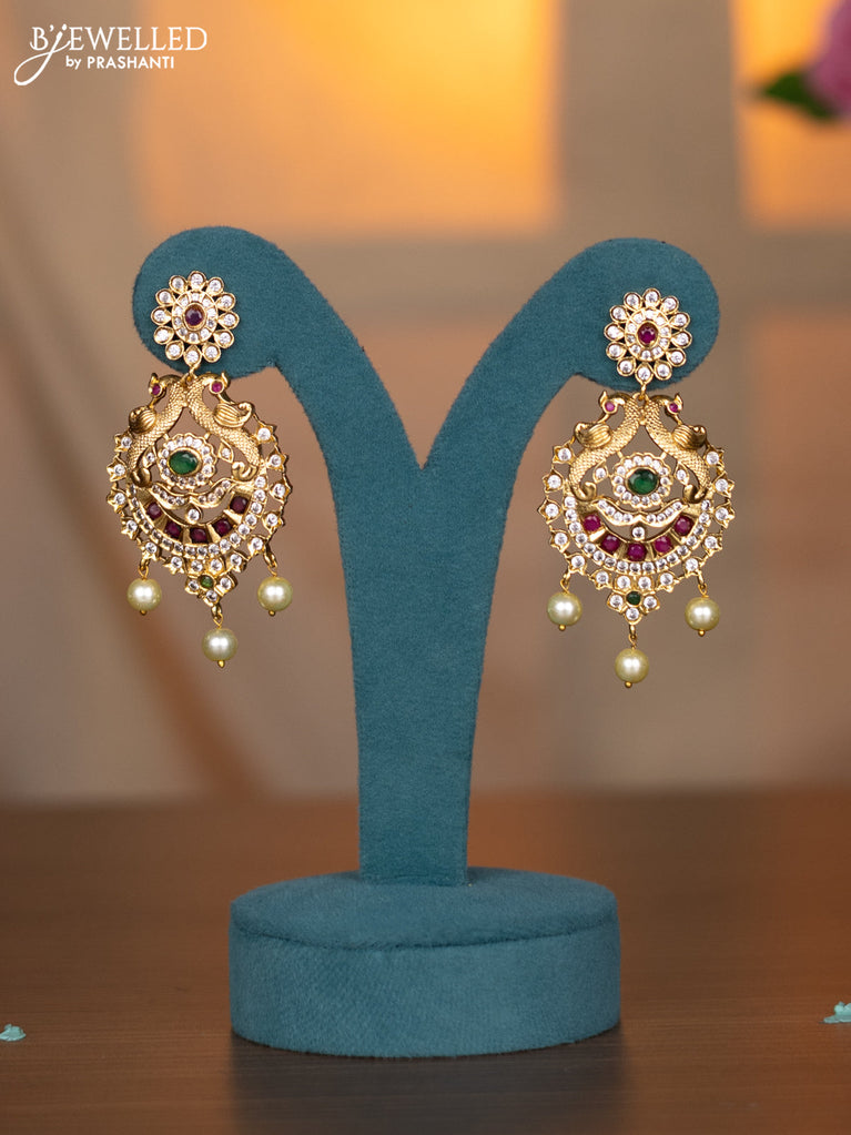 Antique necklace peacock & manga pattern with kemp and cz stones & pearl hangings
