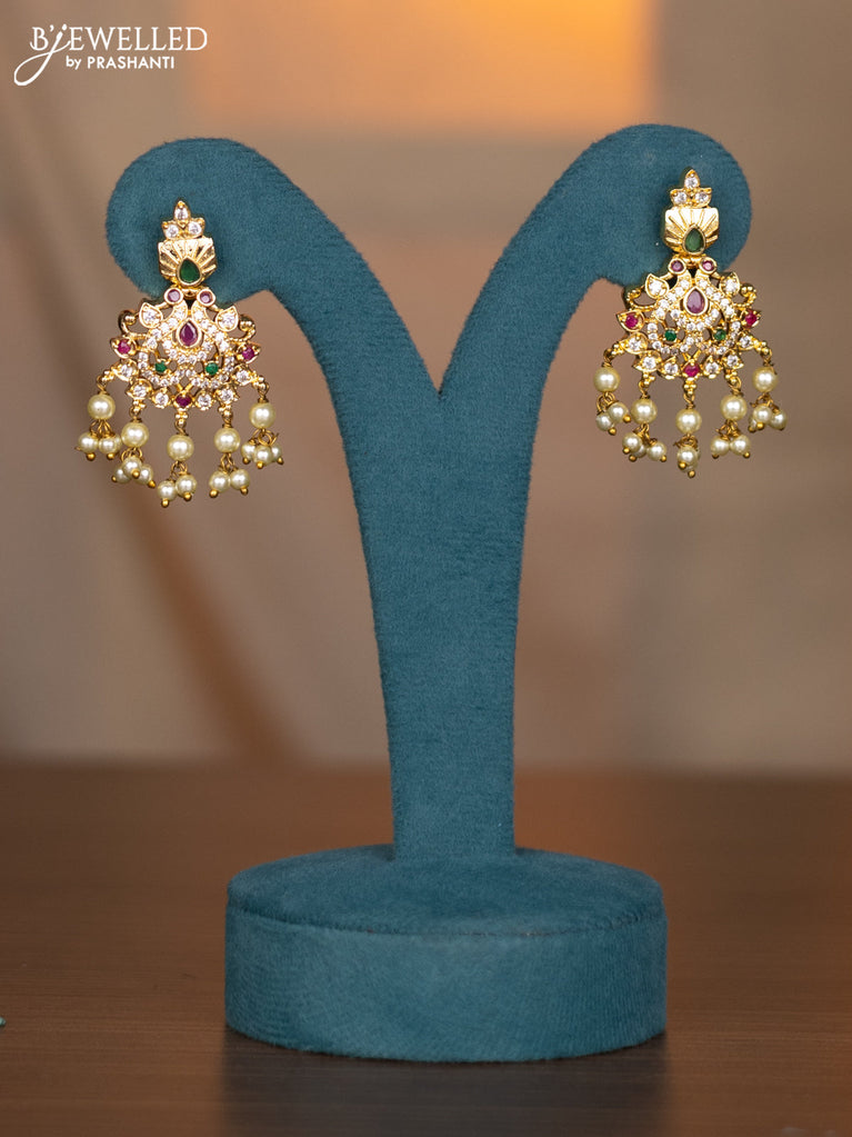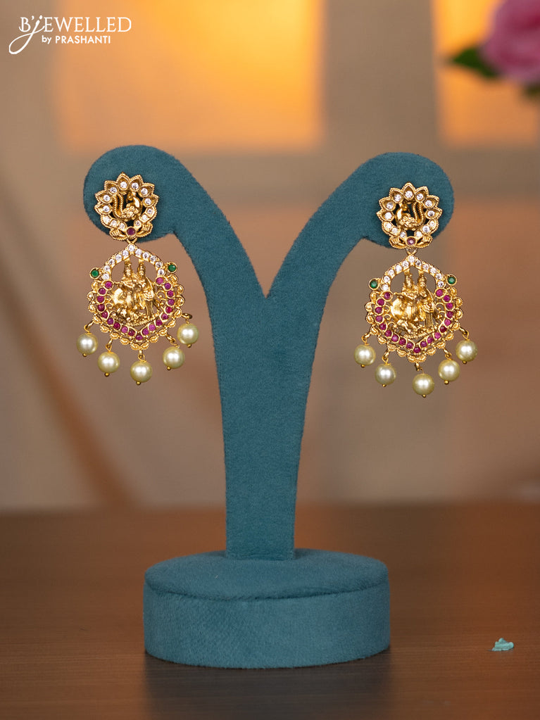 Antique necklace radha krishna pendant with kemp & cz stones and pearl hangings
