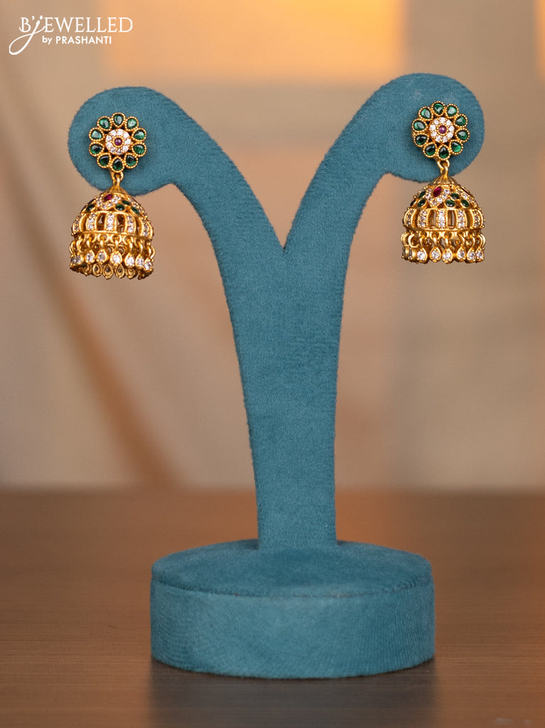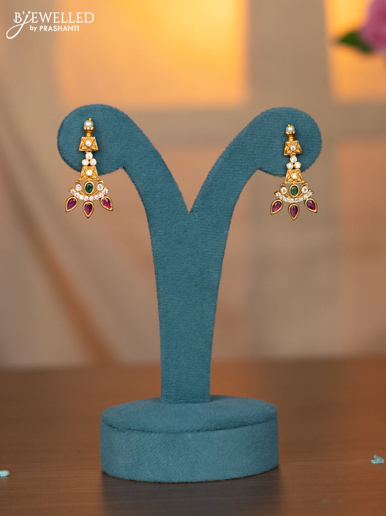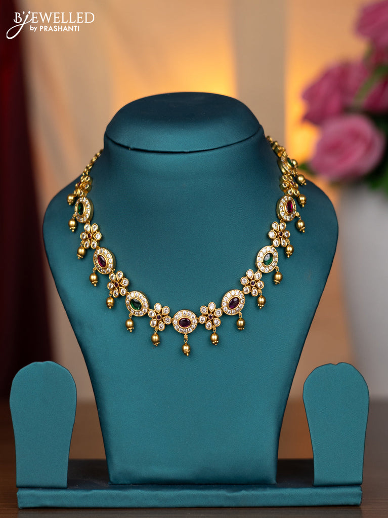 Antique necklace with kemp & cz stones and golden beads hanging without earring