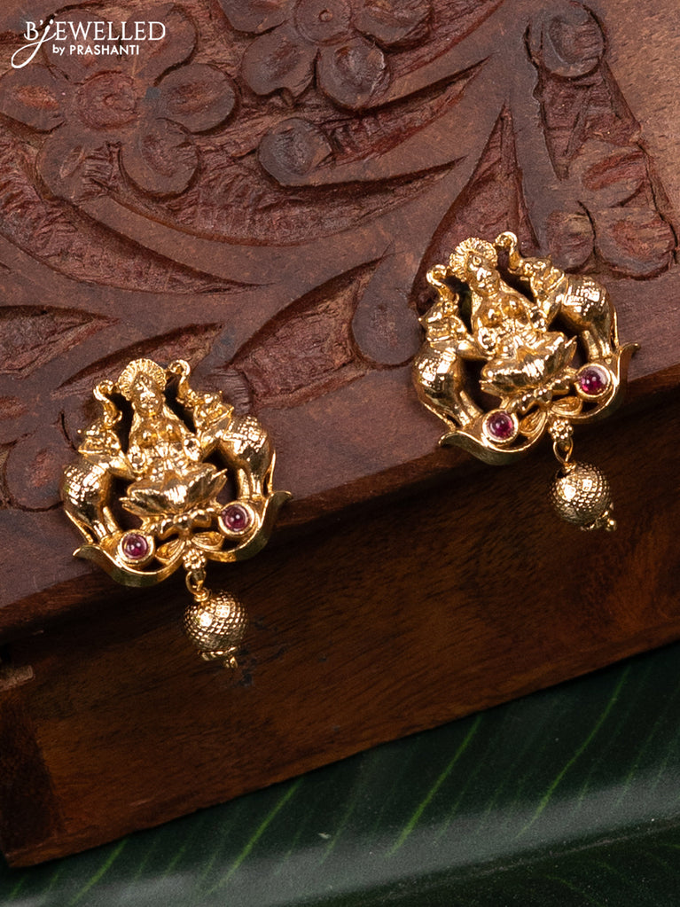 Antique pendant set lakshmi & peacock design with pink kemp stone and golden beads hangings