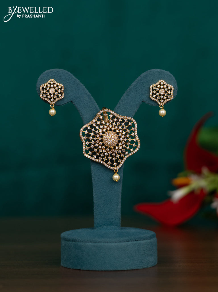 Antique pendant set tirupati balaji design with kemp & cz stones pearl & golden beads hanging