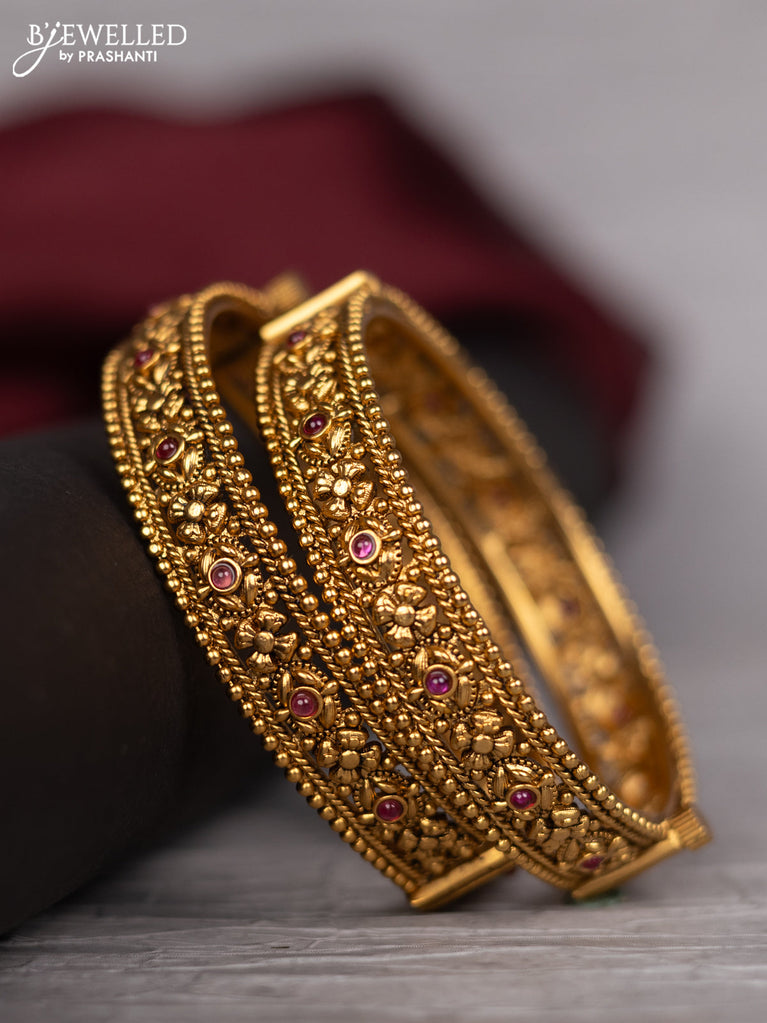 Antique screw type bangle with pink kemp stones