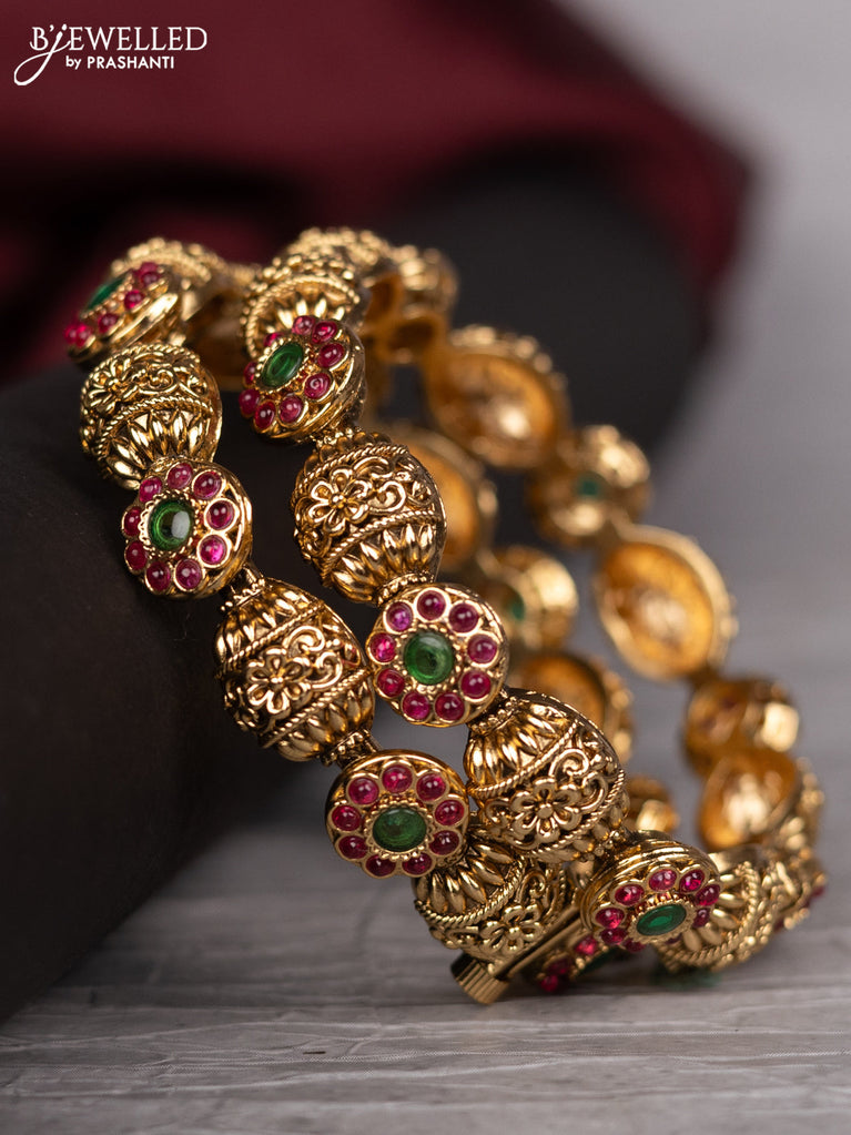 Antique screw type bangle with kemp stones