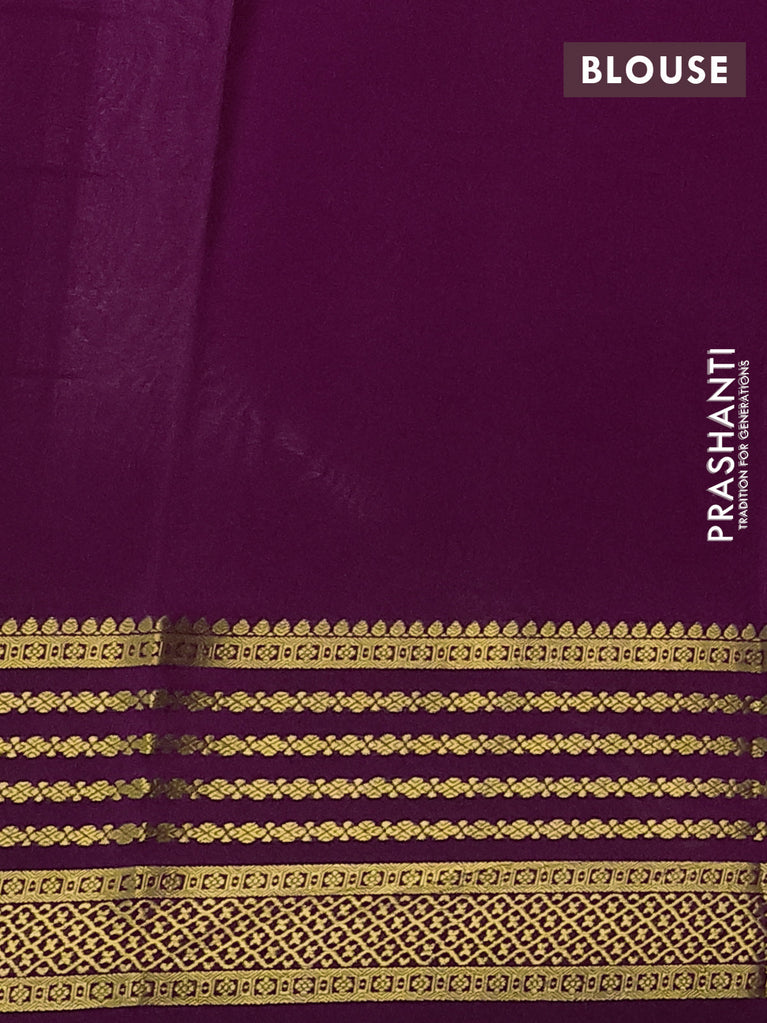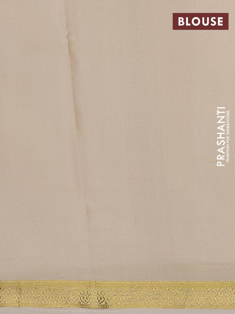 Pure mysore silk saree cream and purple with plain body and zari woven border
