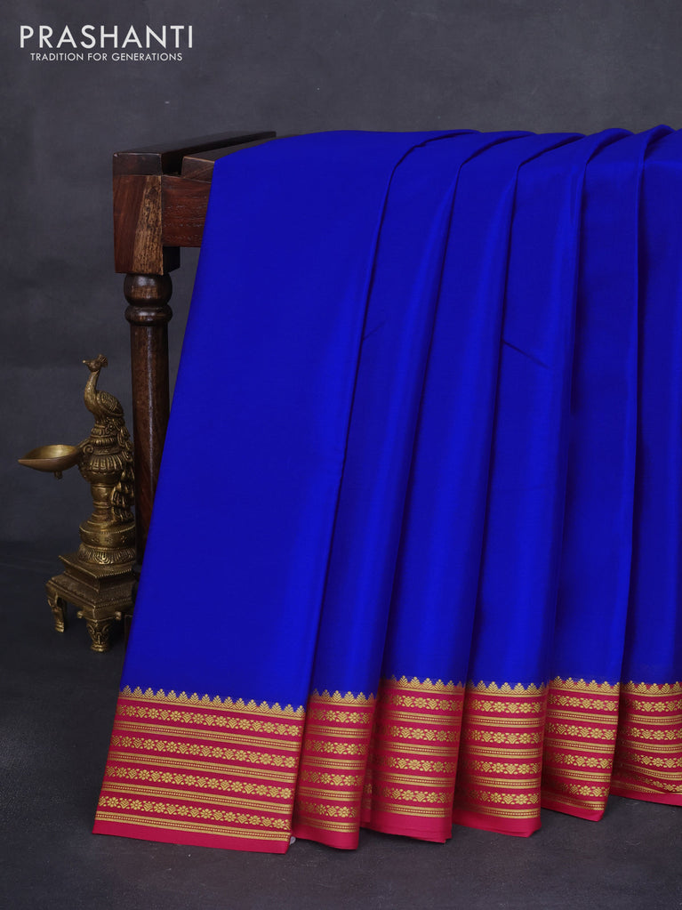 Pure mysore silk saree blue and dark pink with plain body and zari woven border