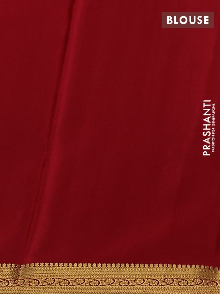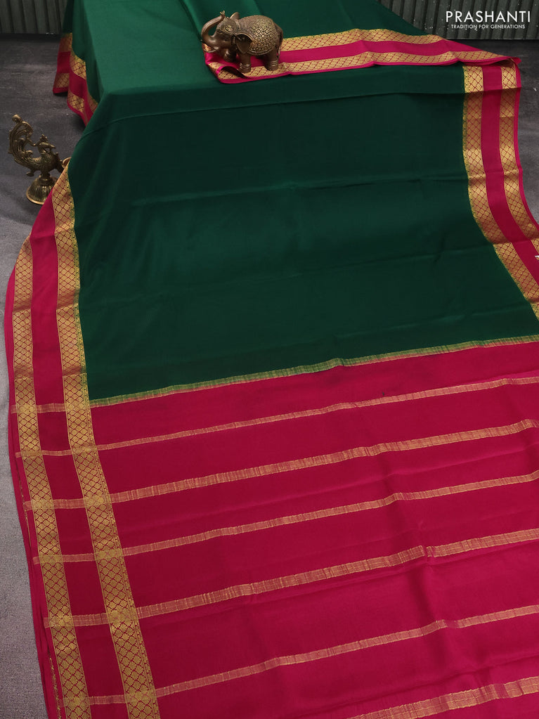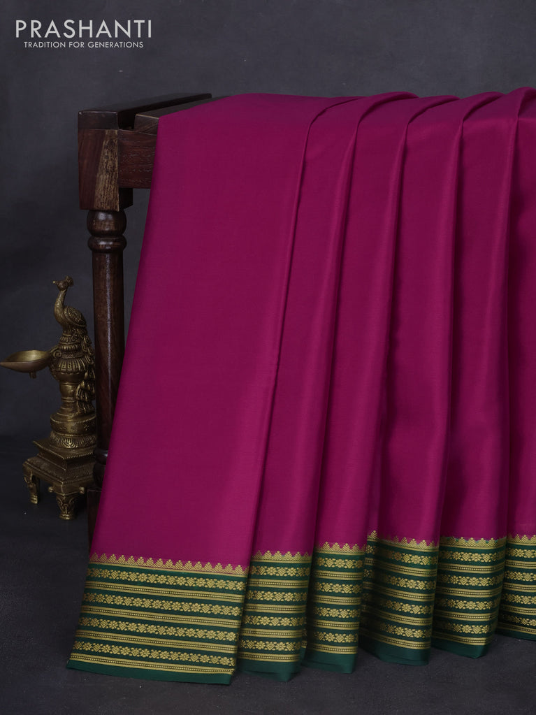 Pure mysore silk saree dark pink and dark green with plain body and zari woven border