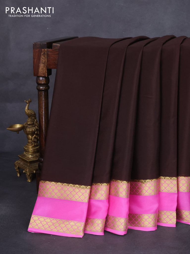 Pure mysore silk saree deep coffee brown and light pink with plain body and rettapet zari woven border