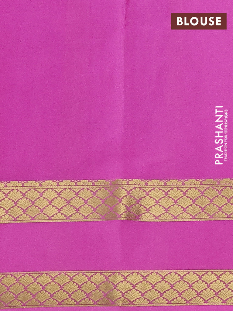 Pure mysore silk saree dark pink and green with plain body and zari woven border