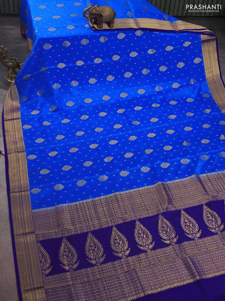 Pure mysore silk saree cs blue and blue with allover zari woven buttas and zari woven border