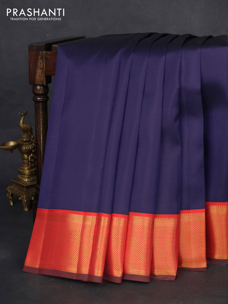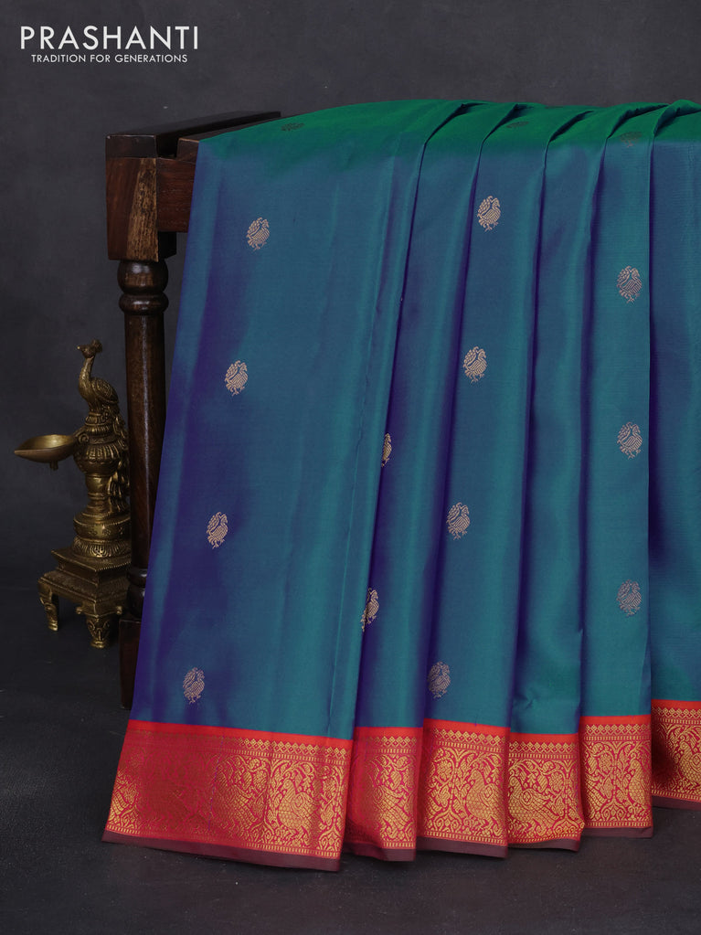 Pure kanchipuram silk saree blue and dual shade of rust with zari woven buttas and zari woven border