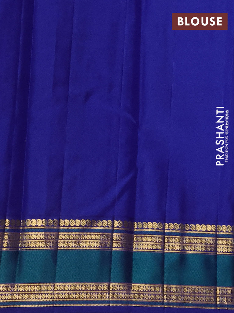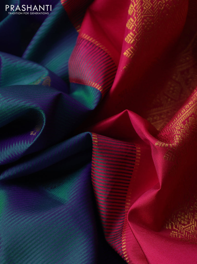 Pure kanchipuram silk saree dark pink and blue with peacock zari woven buttas and rettapet zari woven border