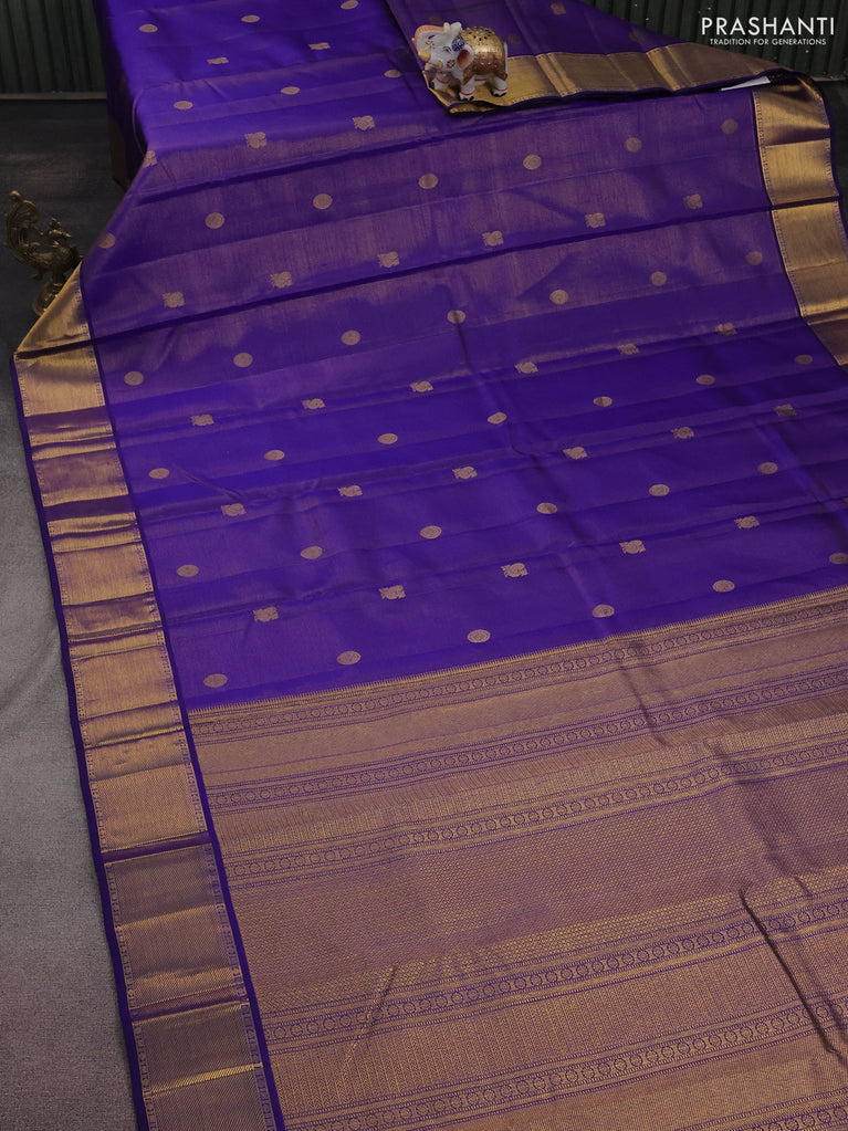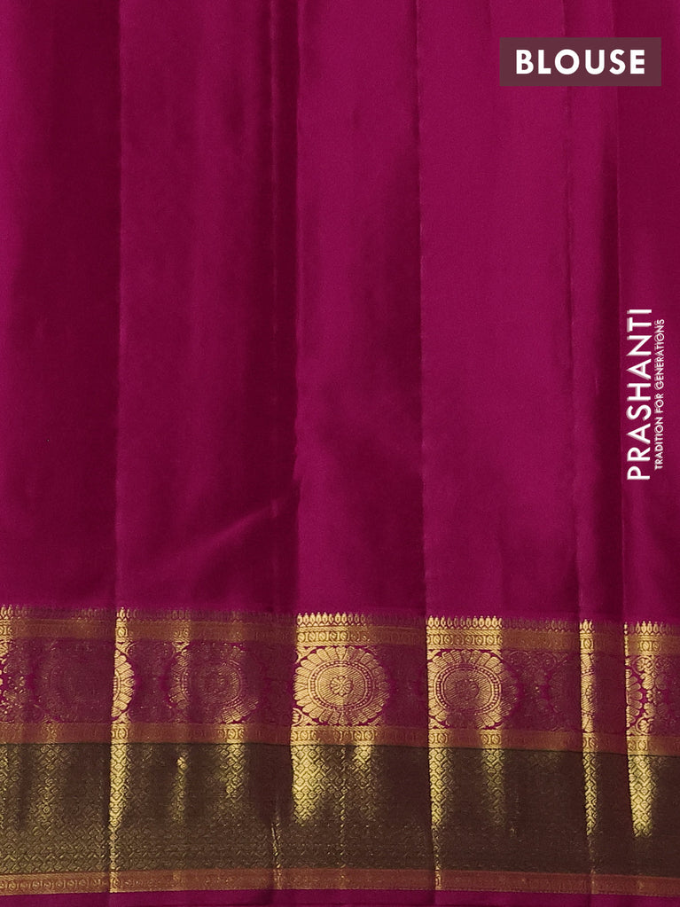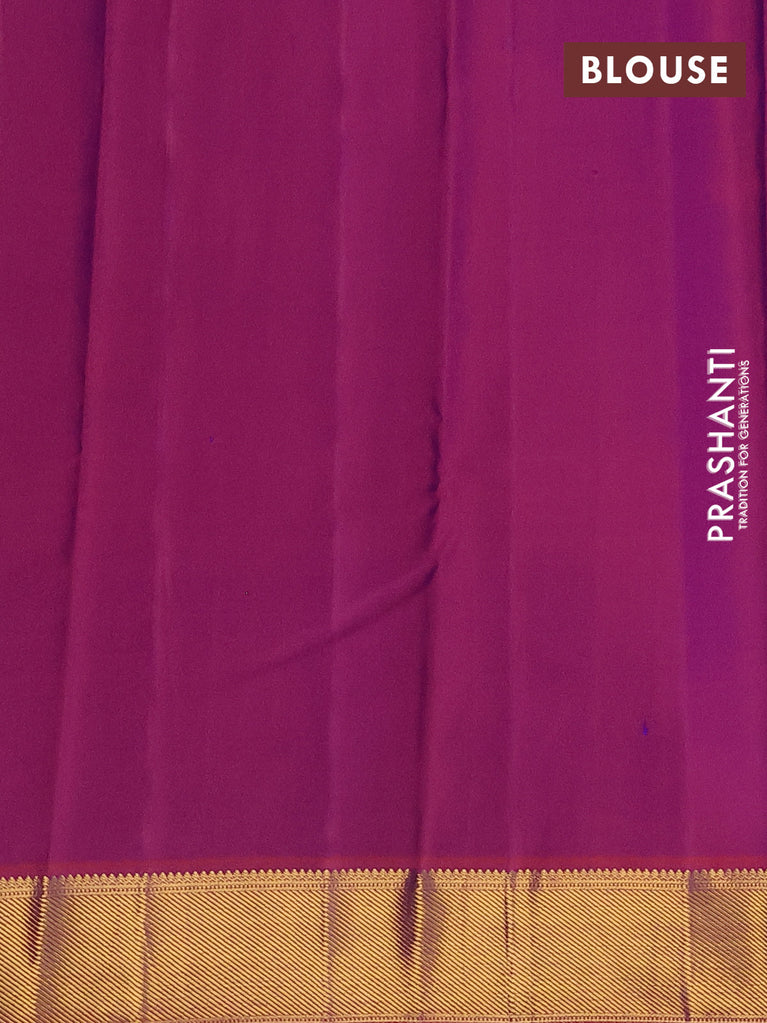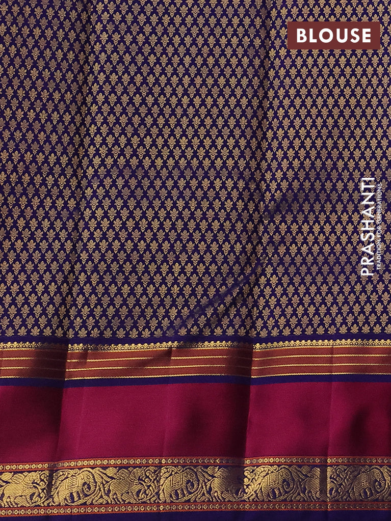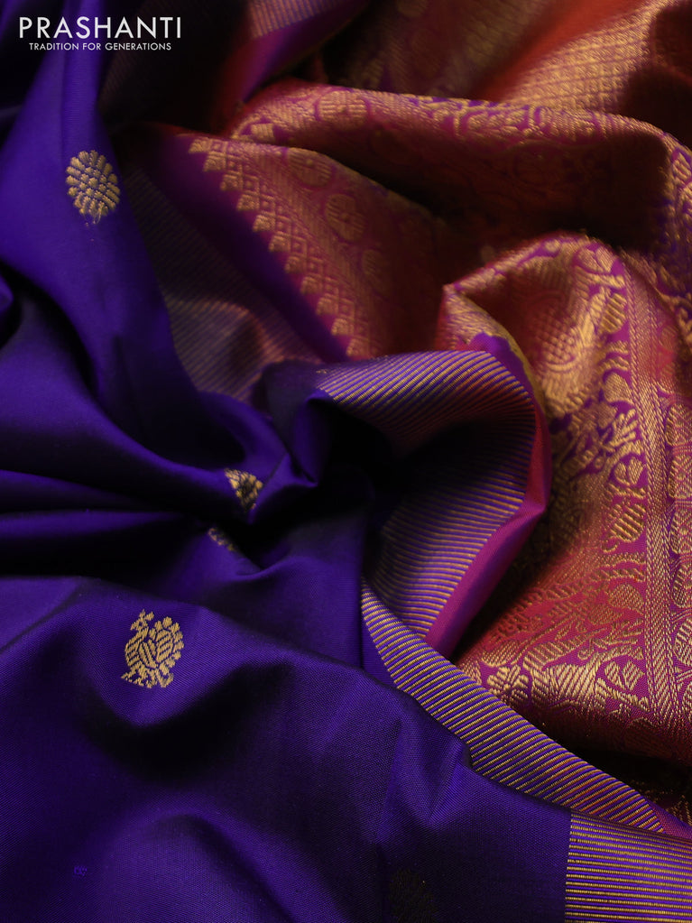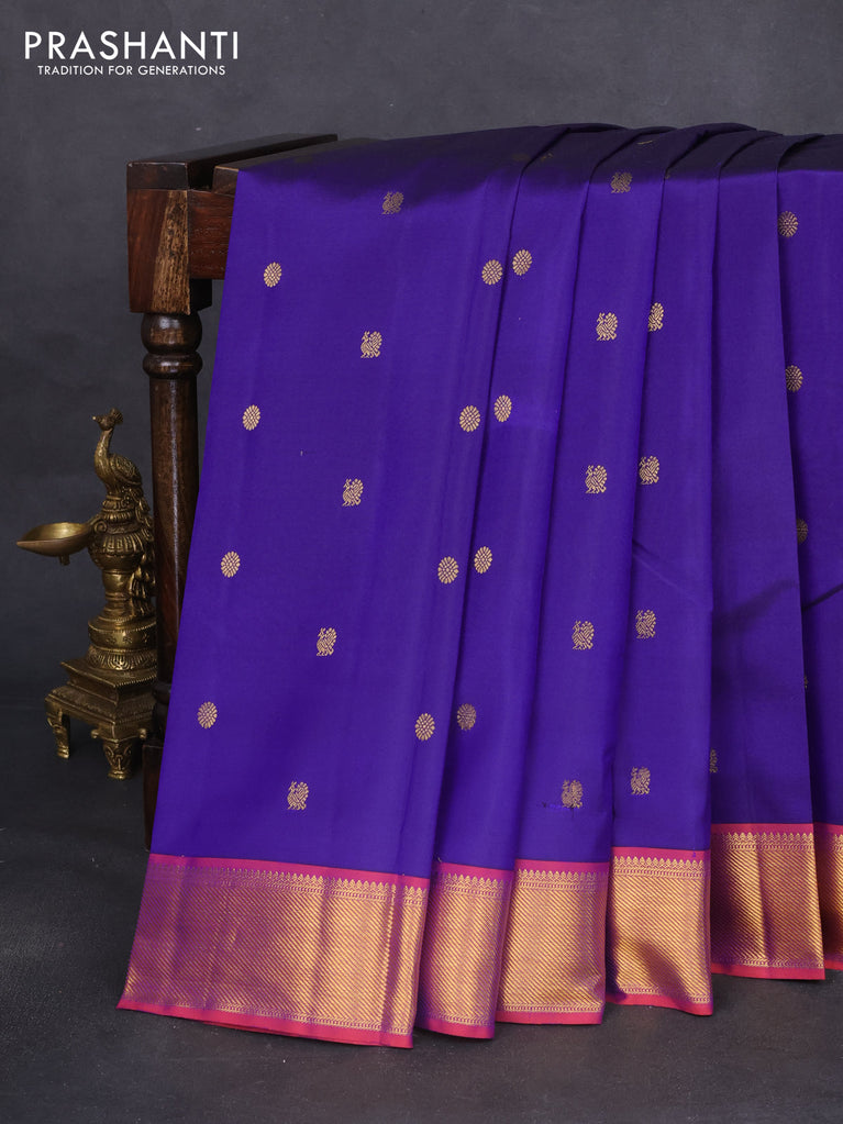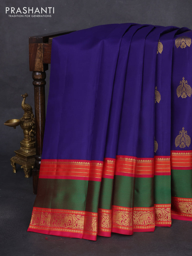 Pure kanchipuram silk saree dark magenta pink and blue with zari woven buttas and rettapet zari woven border