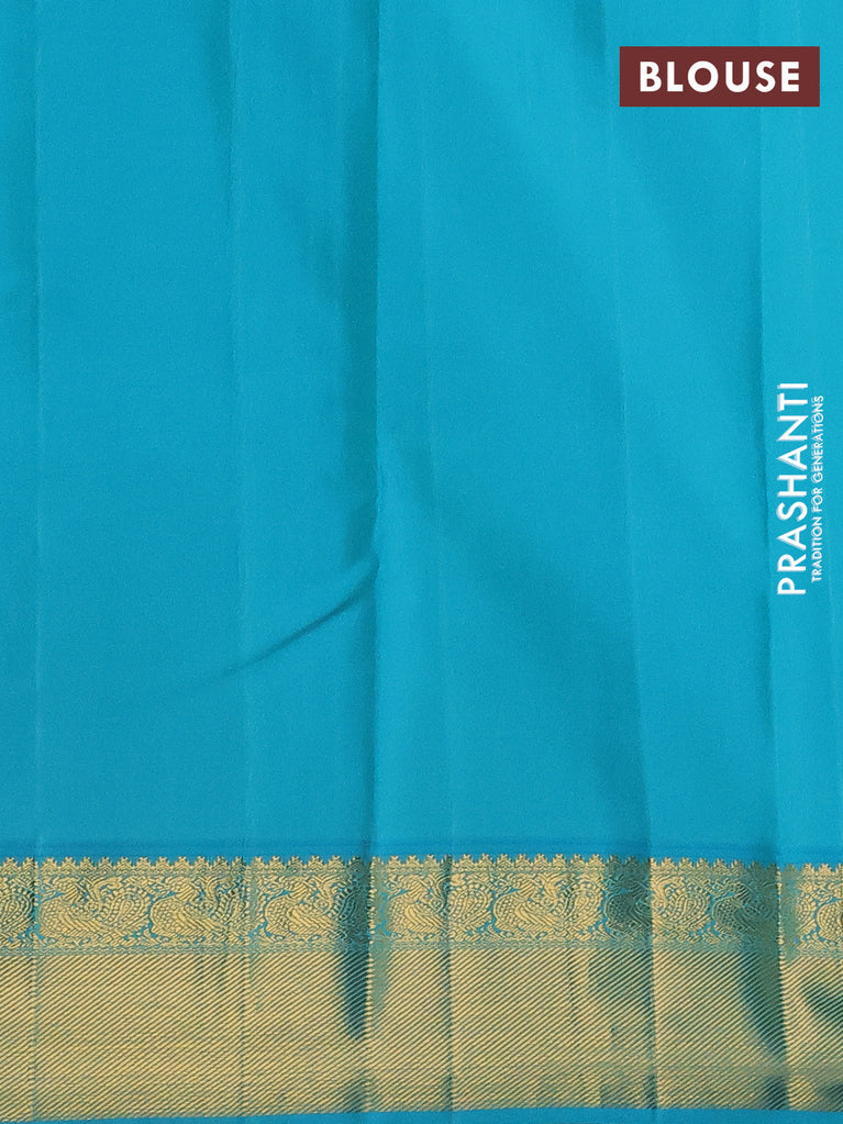 Pure kanchipuram silk saree blue and pink with peacock zari woven buttas and rettapet zari woven border