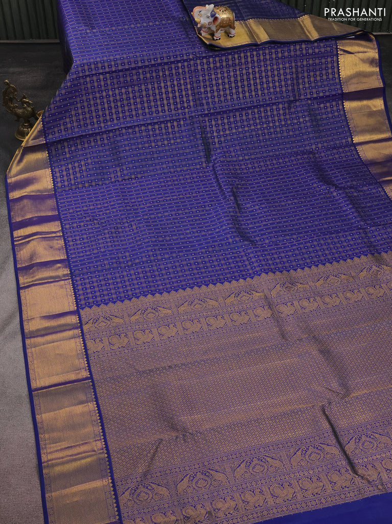 Pure kanchipuram silk saree dual shade of blue with allover small zari checks & buttas and zari woven border