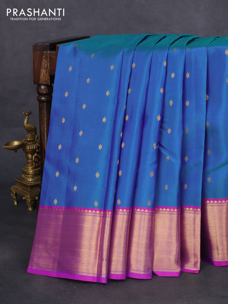 Pure kanchipuram silk saree dual shade of blue and pink with zari woven buttas and zari woven border