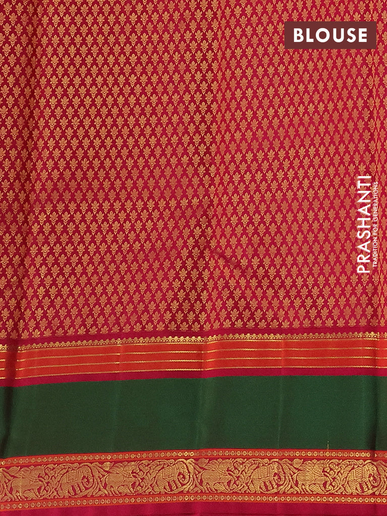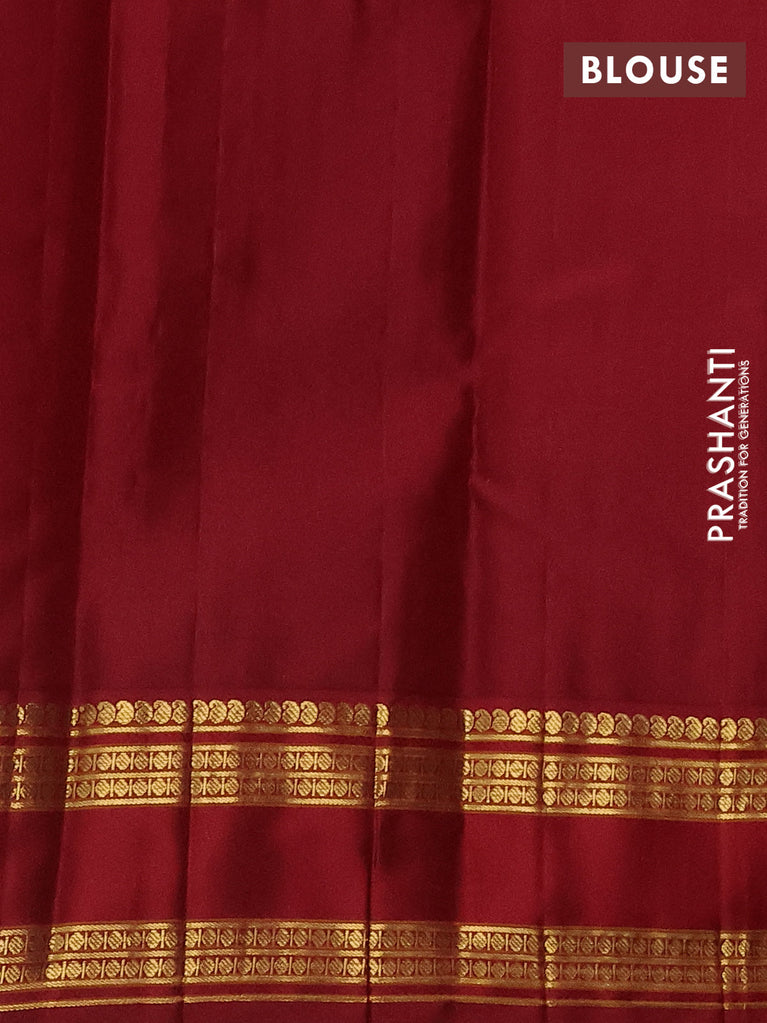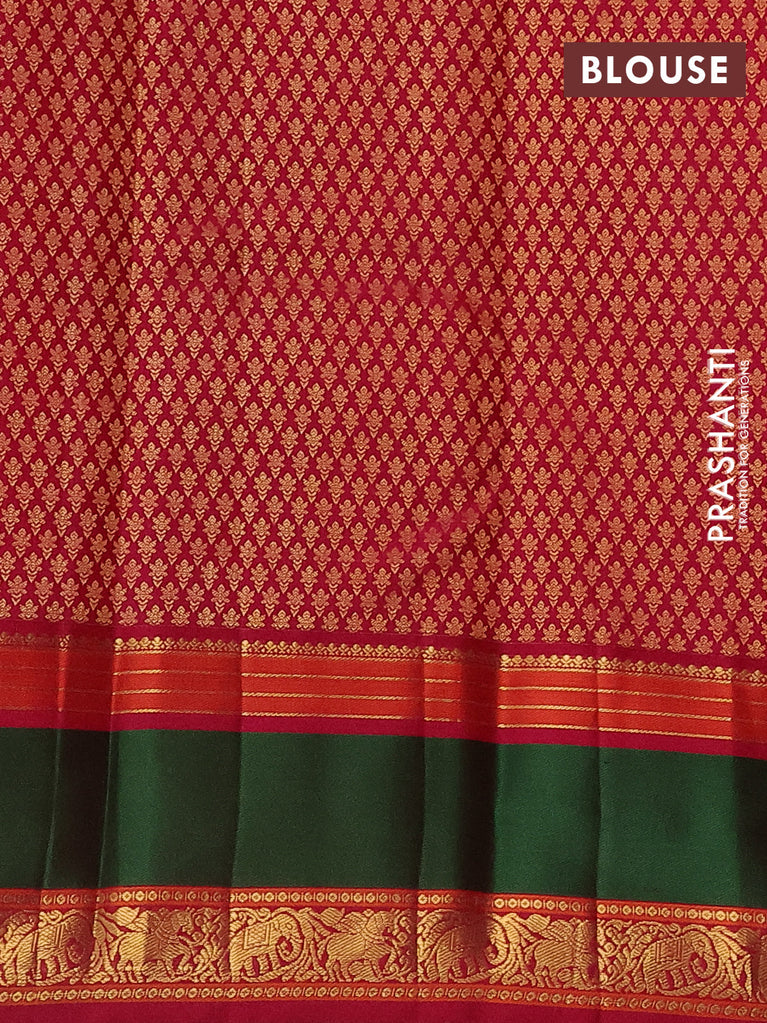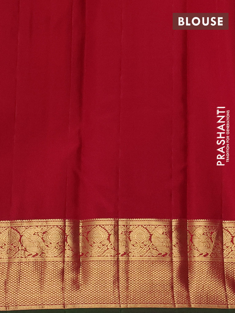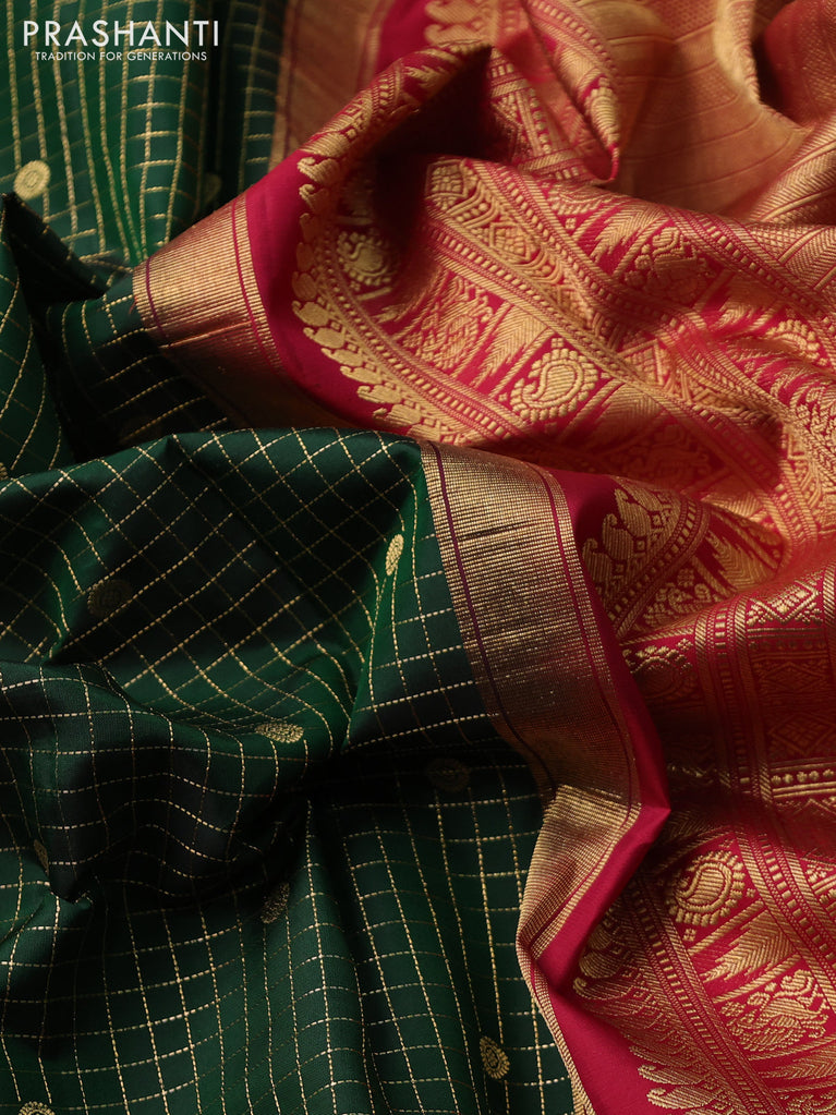 Pure kanchipuram silk saree dark green and maroon with allover small zari checks & buttas and zari woven korvai border