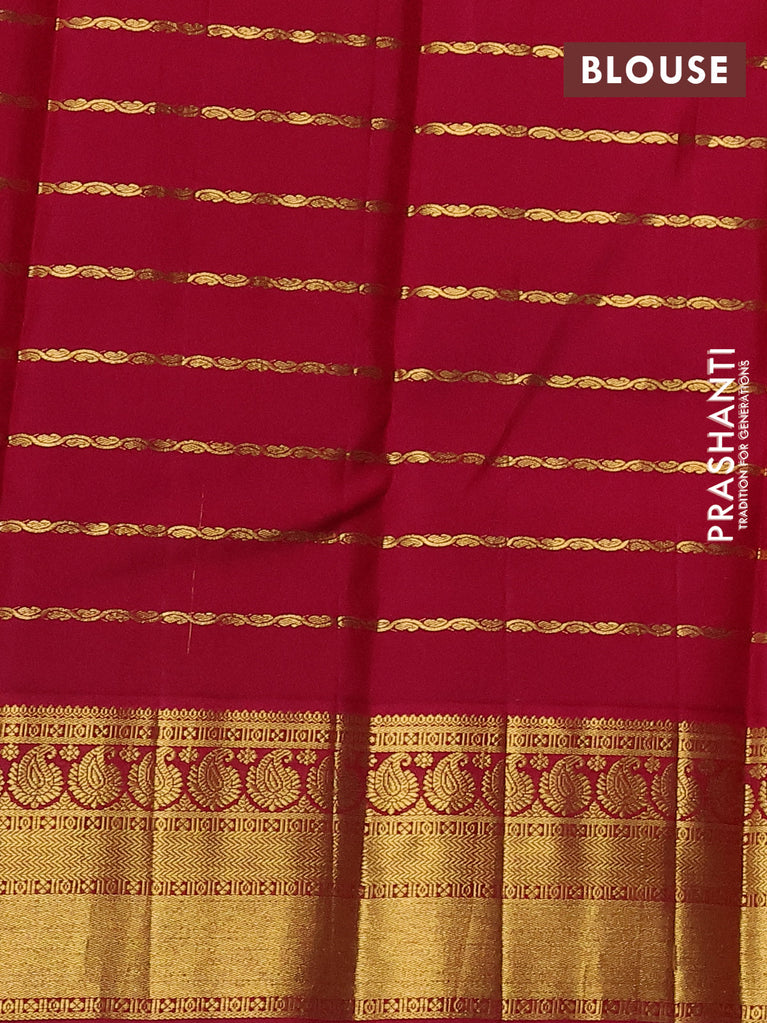 Pure kanchipuram silk saree deep maroon and green with allover zari woven stripes pattern and zari woven korvai border