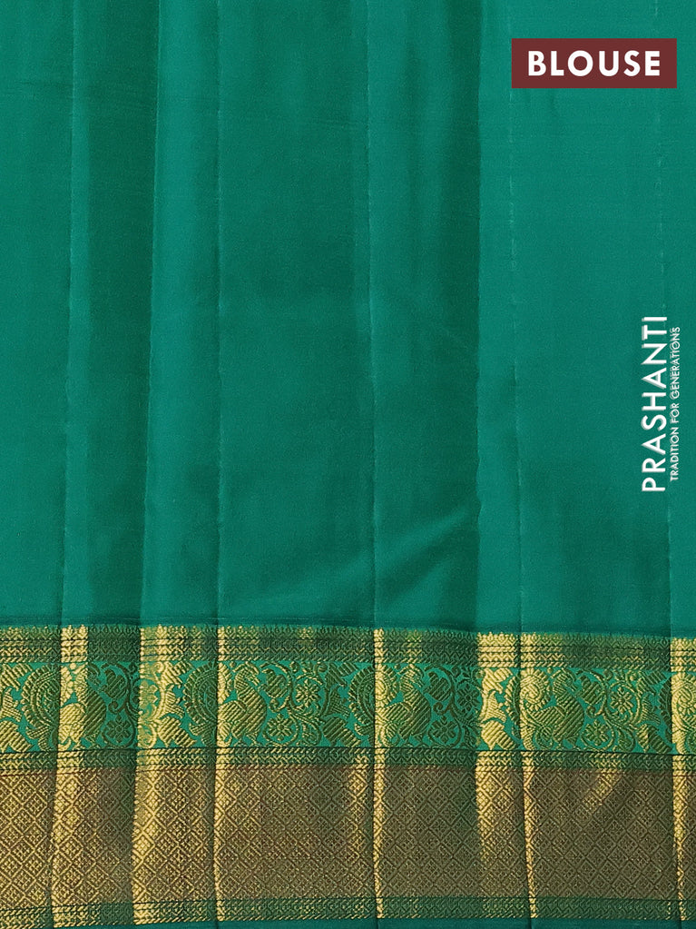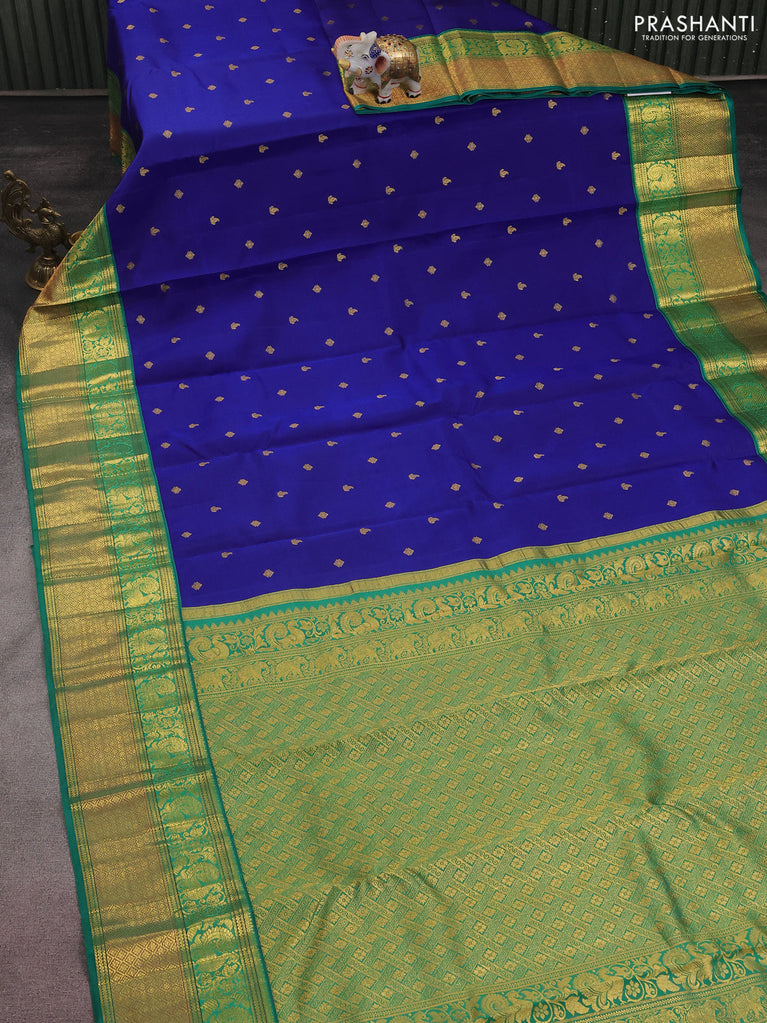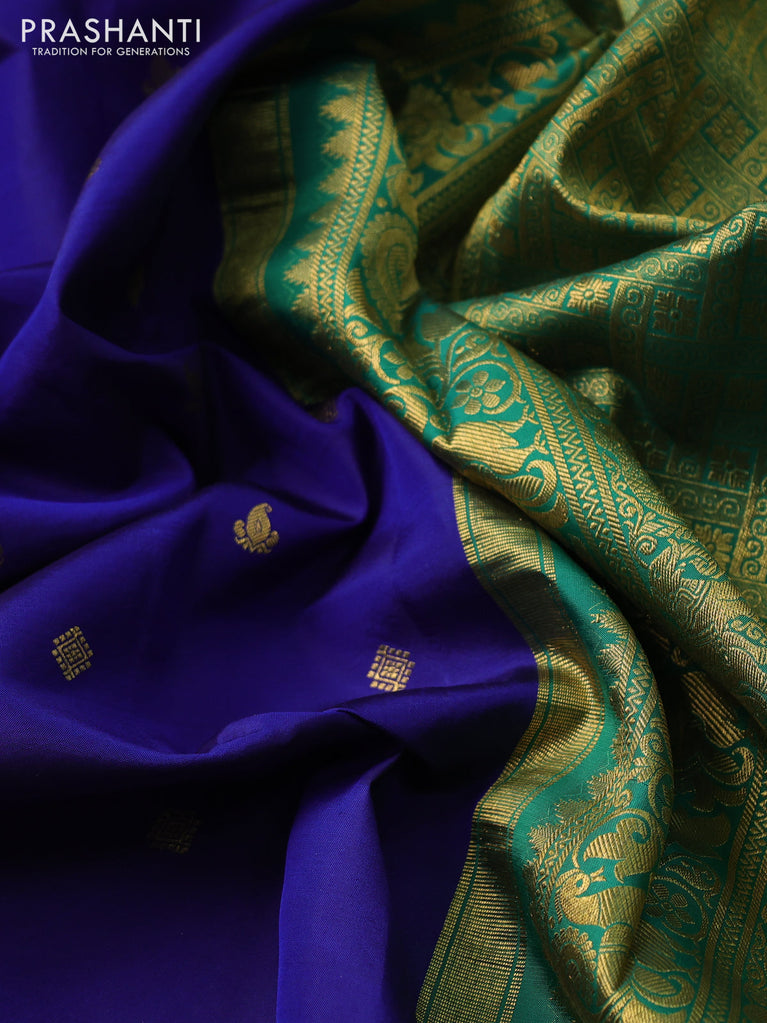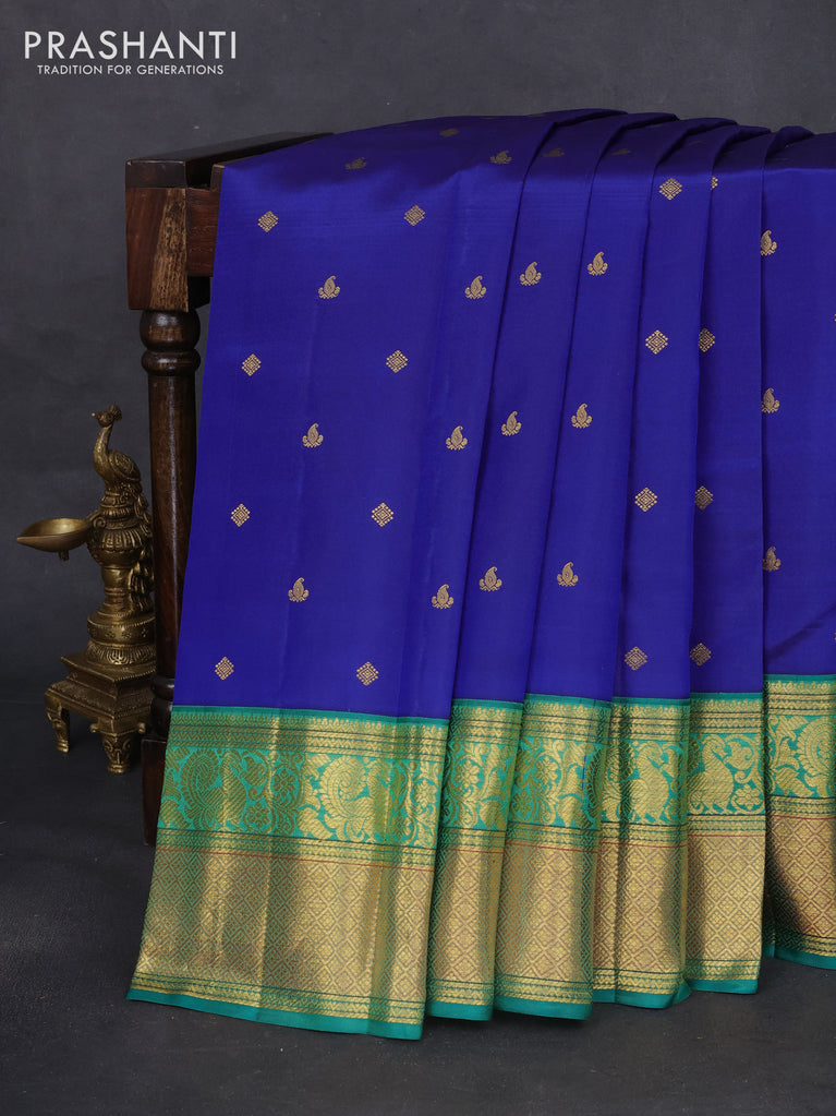 Pure kanchipuram silk saree blue and green with zari woven buttas and annam zari woven border