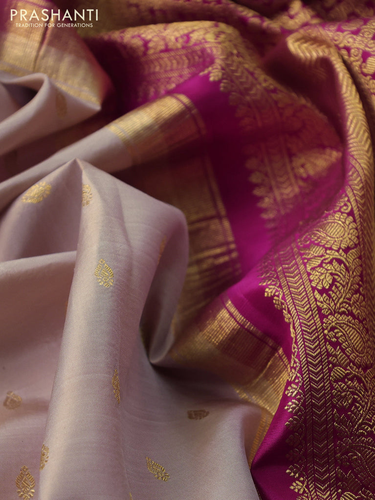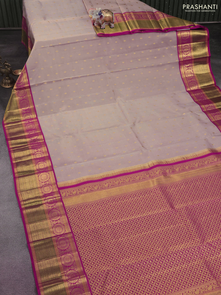 Pure kanchipuram silk saree beige and pink with zari woven buttas and zari woven korvai border